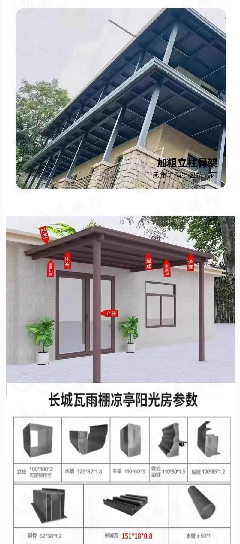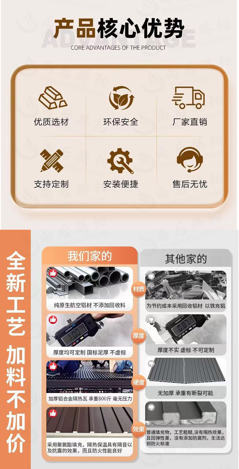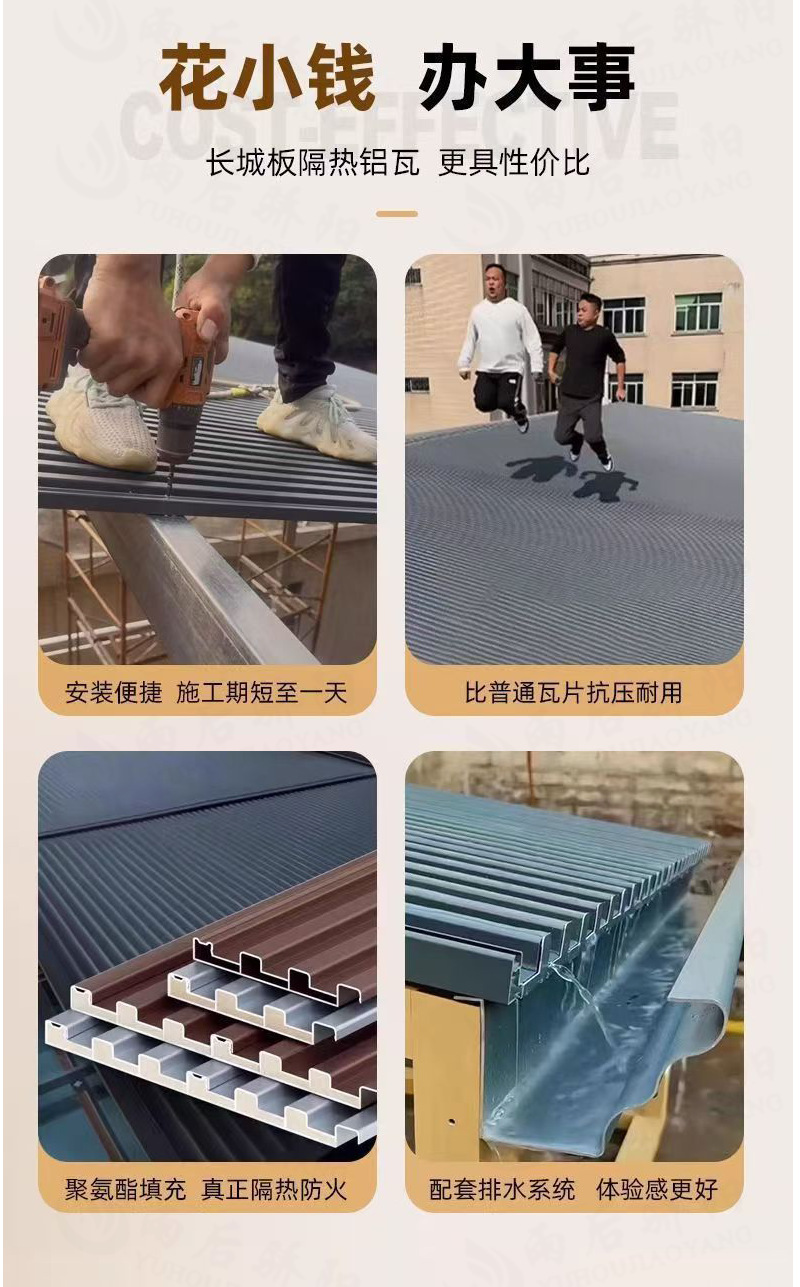 长城隔热铝瓦铝合金长城版雨棚户外防雨蓬自己安装庭院阳台遮阳棚
