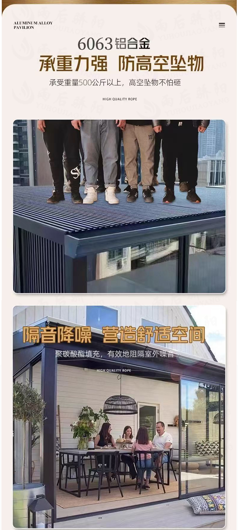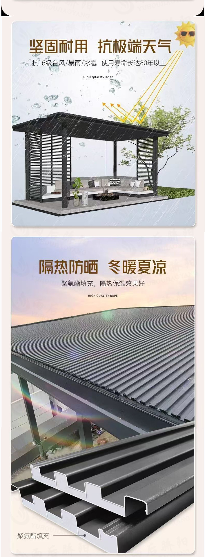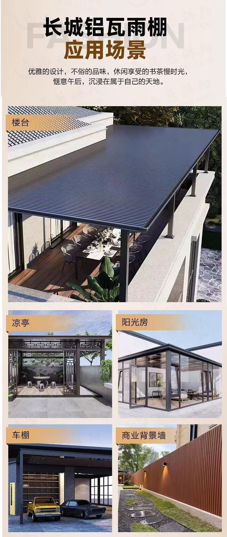 长城隔热铝瓦铝合金长城版雨棚户外防雨蓬自己安装庭院阳台遮阳棚