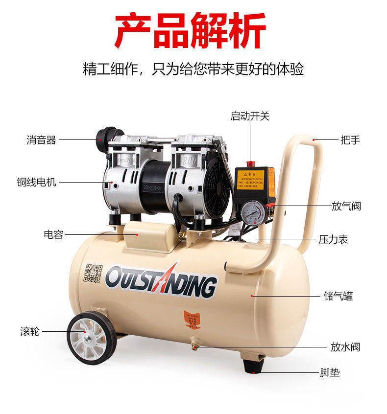 Otus 공기 펌프 공기 압축기 작은 공기 압축기 팽창 식 오일이없는 음소거 220V 목공 페인트 펌프스토어 가기