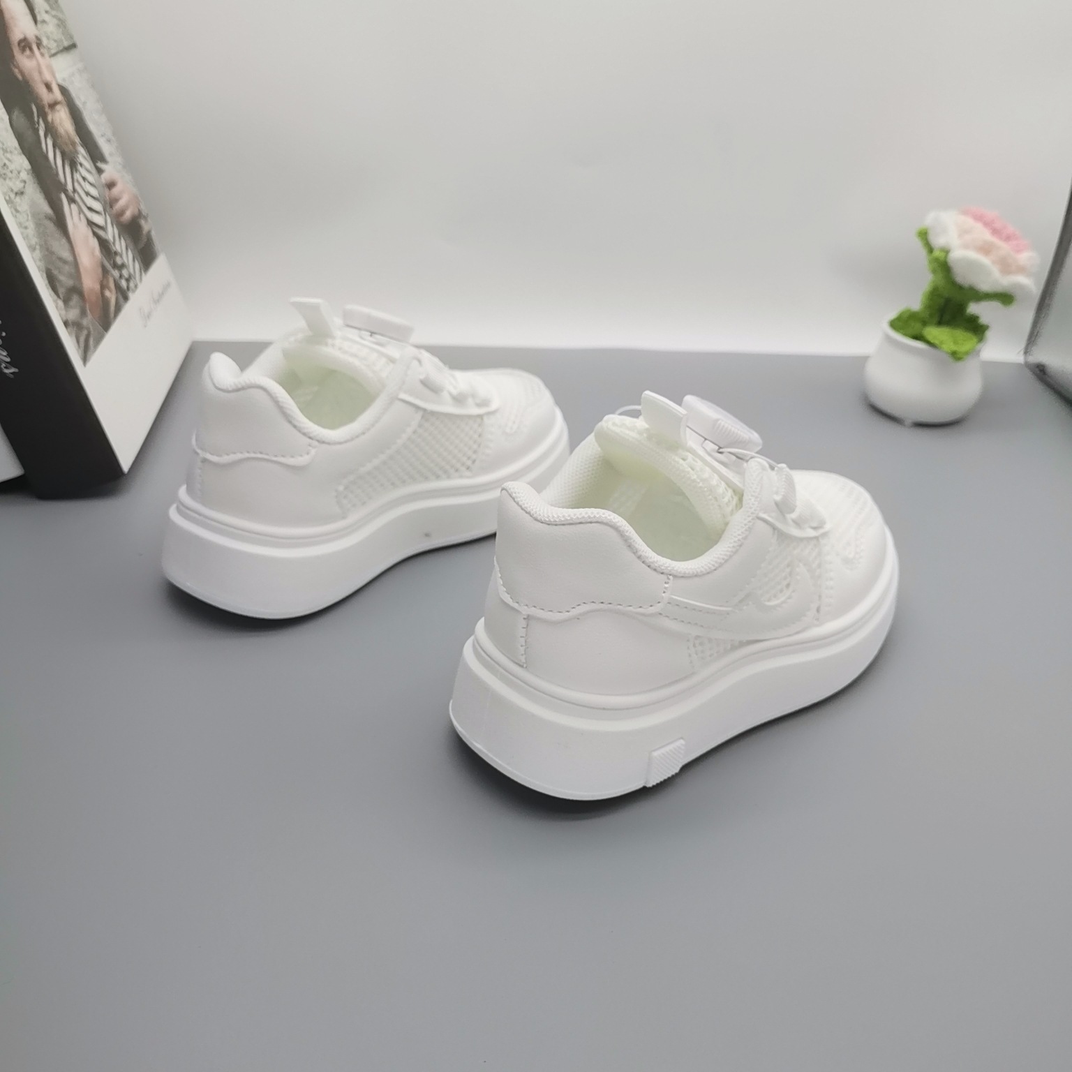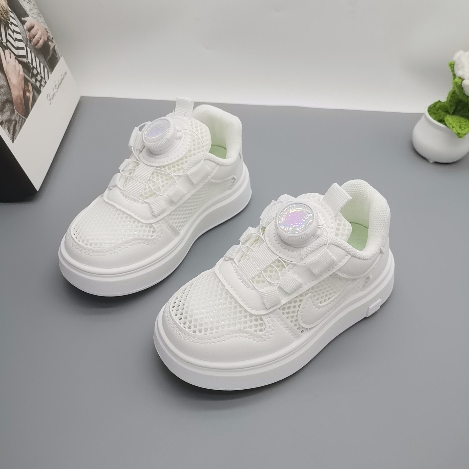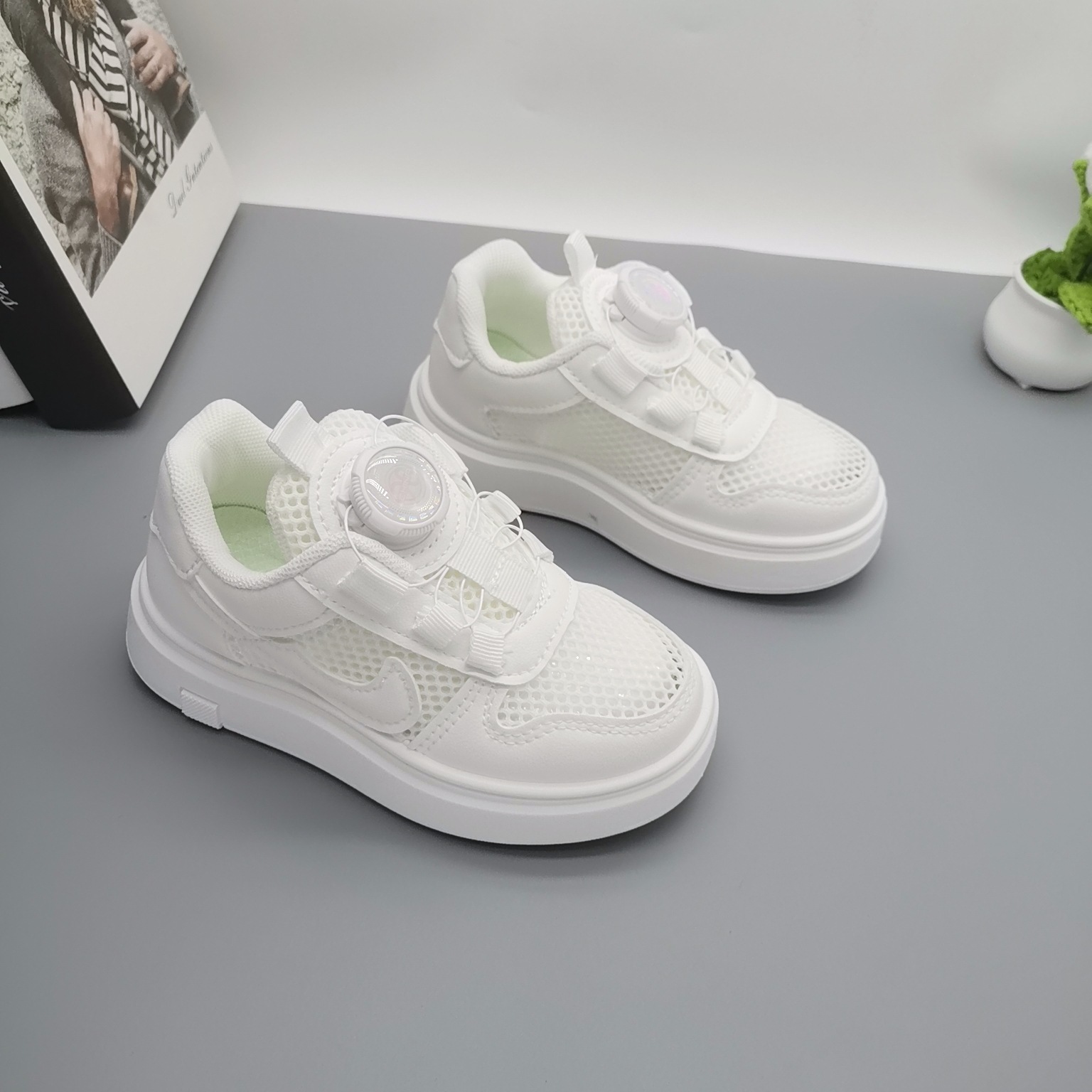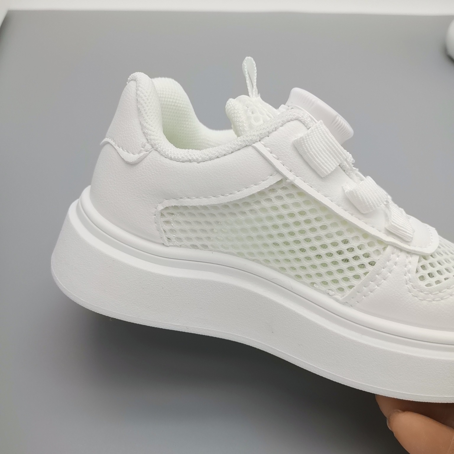 어린이 투명한 흰색 신발 캠퍼스 아기 신발 소년 흰색 운동화 소녀 통기성 신발 단추 운동화