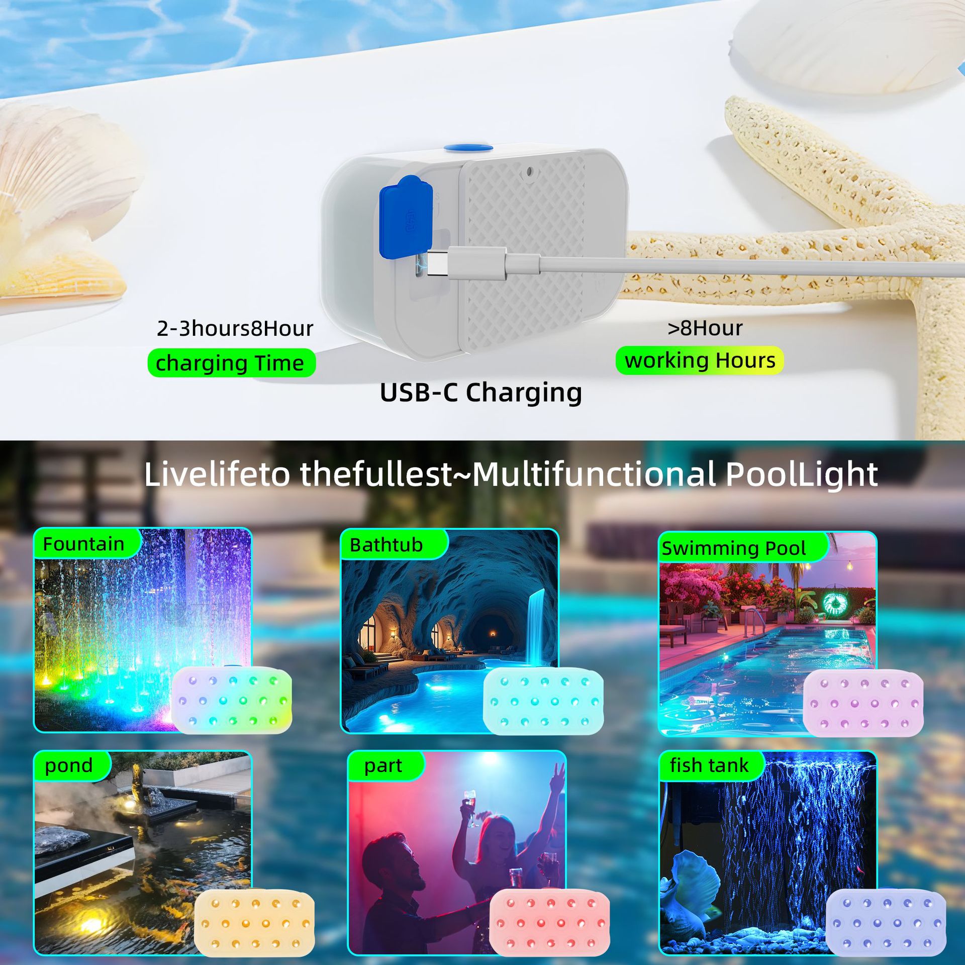 • 흰색 수영장 조명(단일 팩)(리모컨 포함)