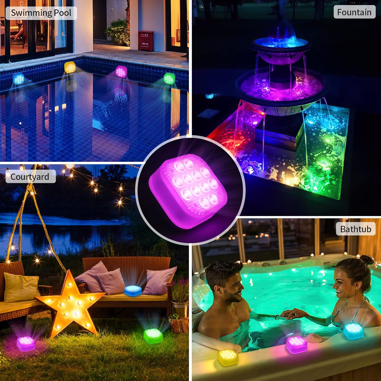 • 흰색 수영장 조명(4개 팩)(리모컨 포함)