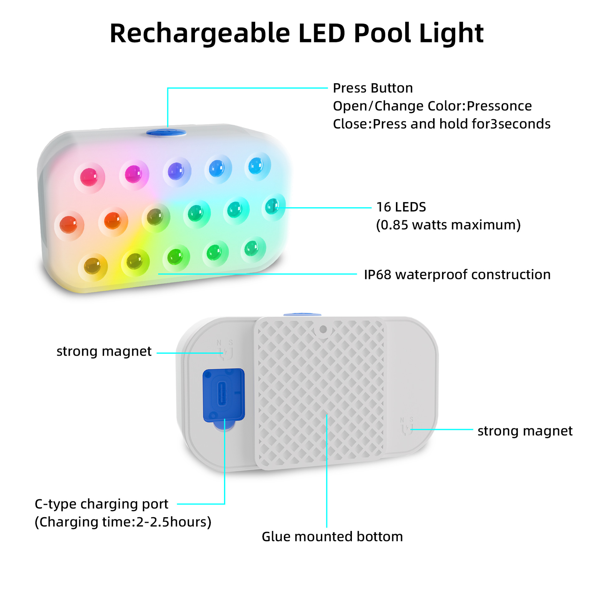 • 흰색 수영장 조명(2개 팩)(리모컨 포함)