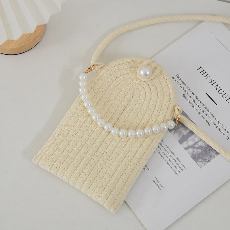 새로운 스타일의 꽃무늬 직조 가방, 여성용 숄더/크로스백, 해변 휴가용, 휴대폰/립스틱/소품 수납 가능한 면끈 가방, 핸드백스토어 가기