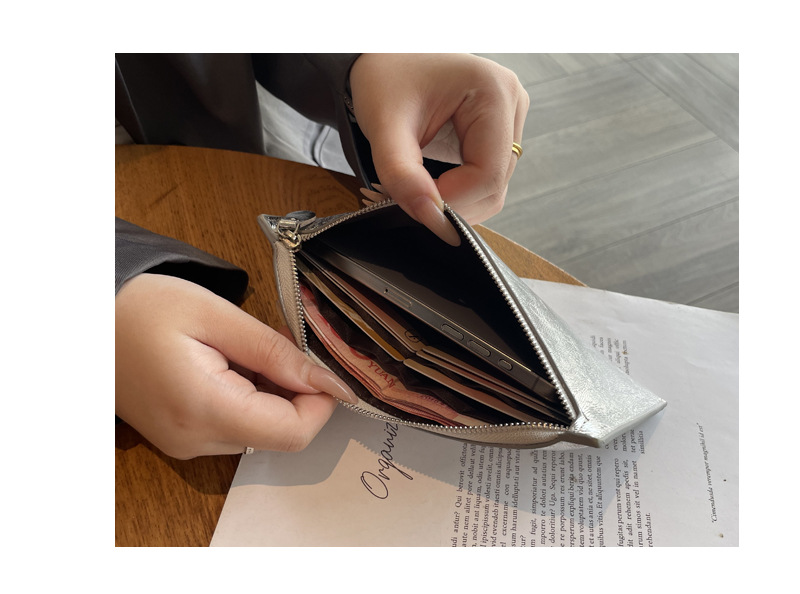 여성용 천연 가죽 장지갑 2026년 신상 패션 실버 머니클립 1층 소가죽 핸드폰 가방 심플하고 우아한 틈새시장 상품스토어 가기