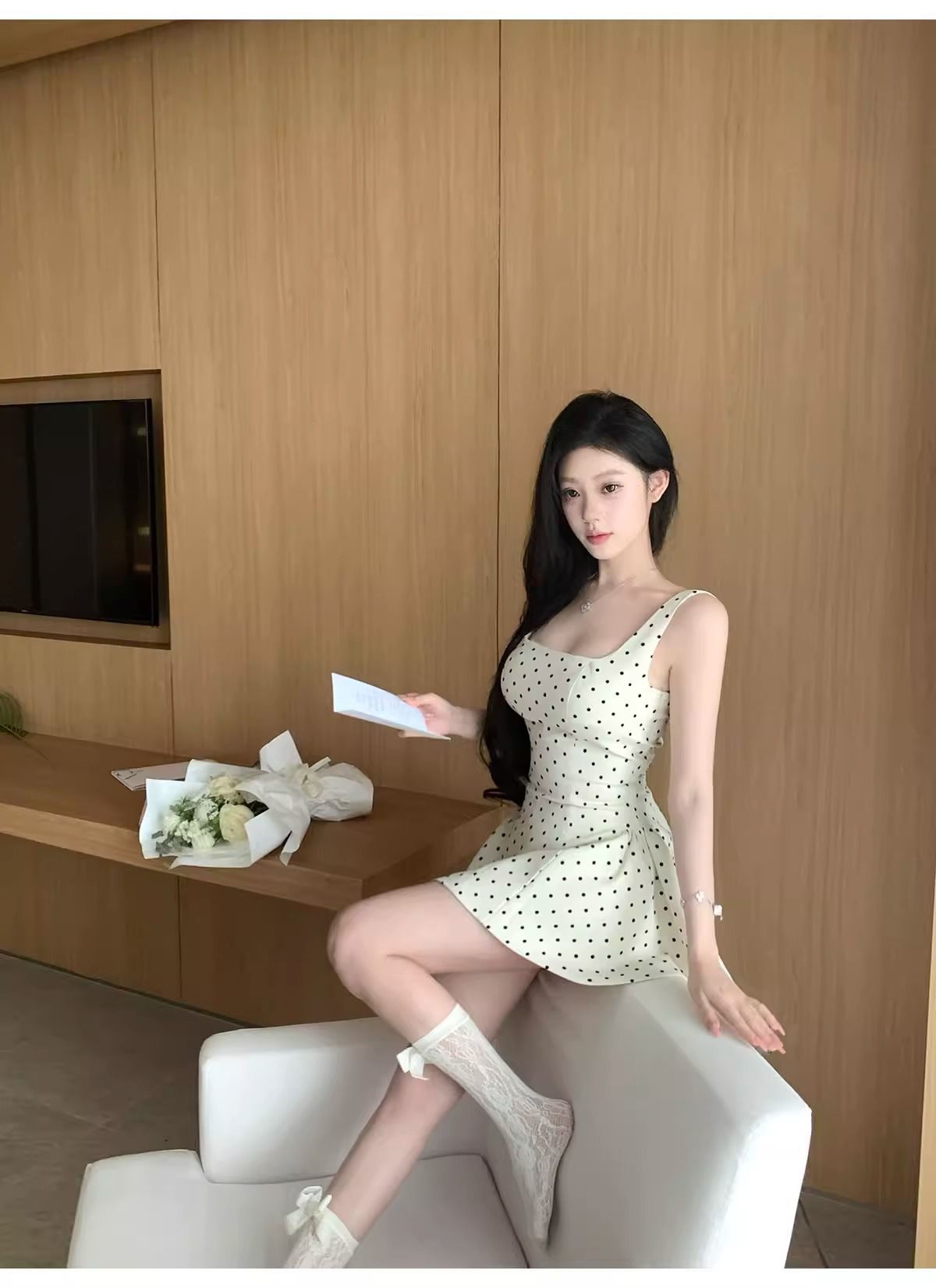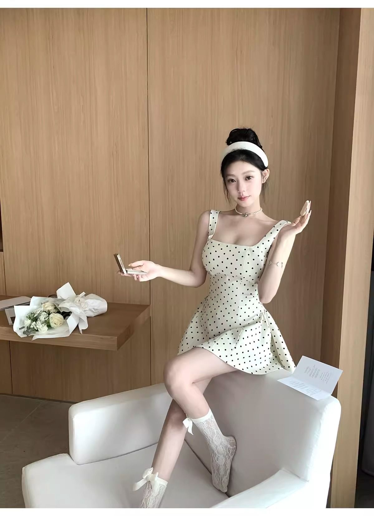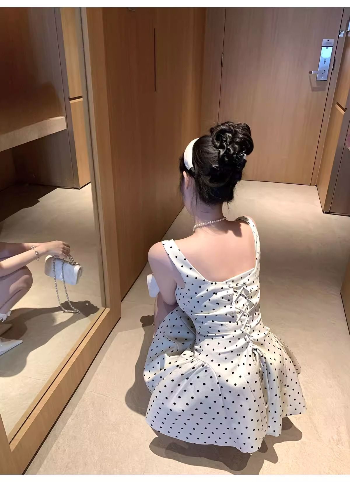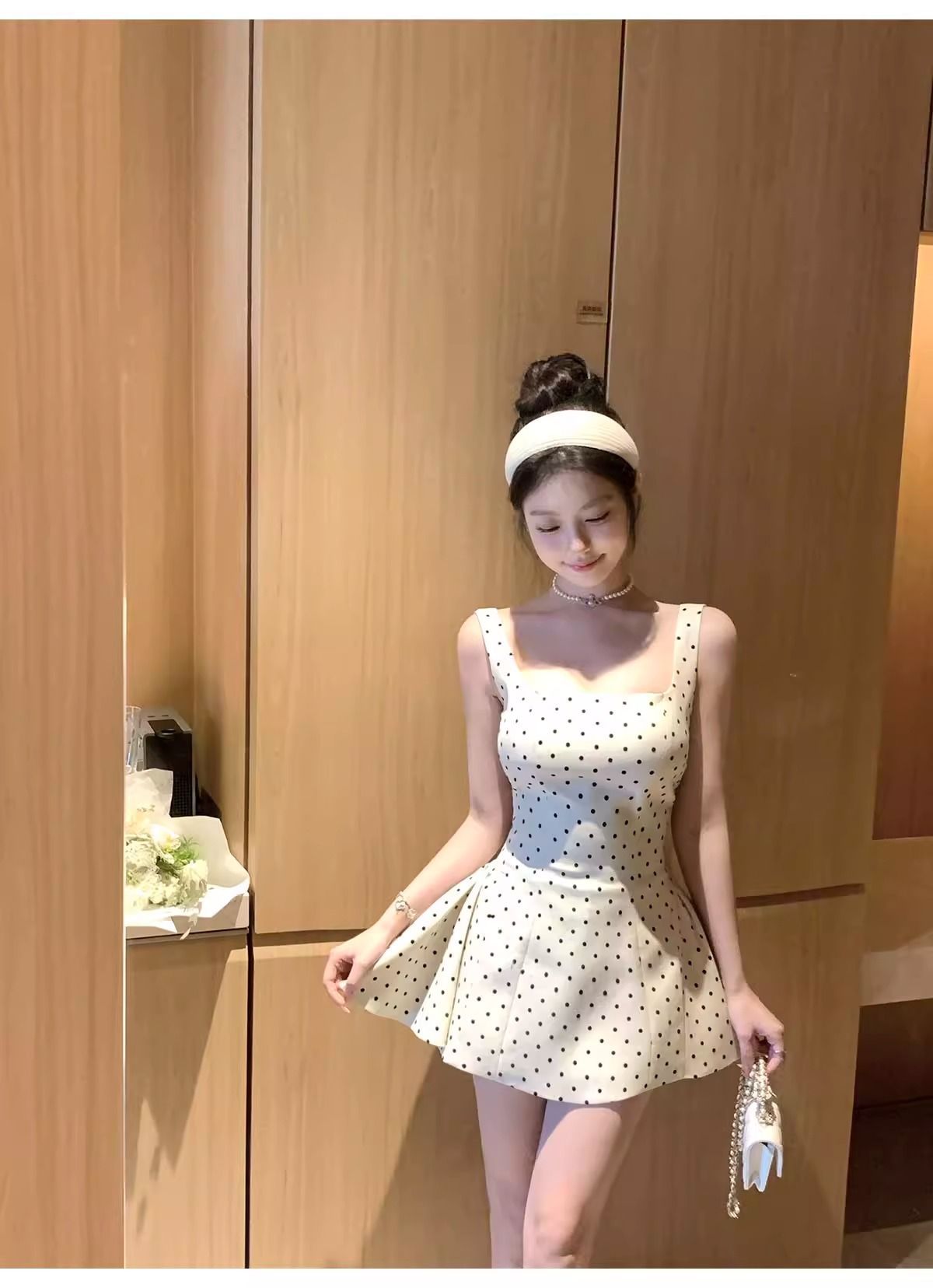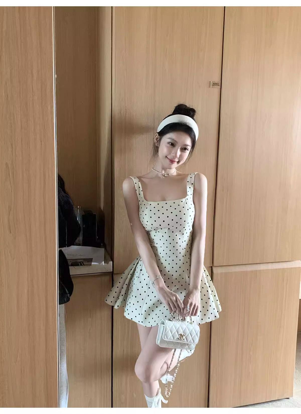 키 작은 여성을 위한 프렌치 스타일 폴카 도트 민소매 원피스, 2026년 여름 신상, 우아하고 아름다운 A라인 퍼프 숏 스커트스토어 가기