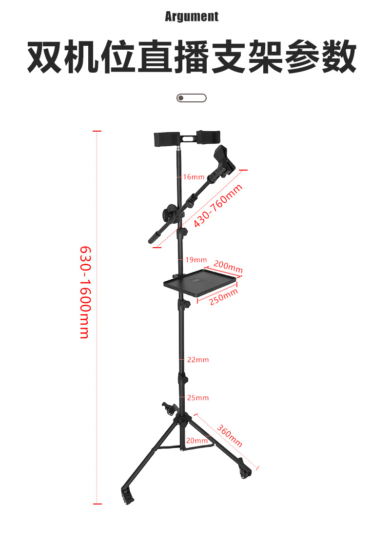 • 범용 휠*듀얼 카메라*휴대폰 라이브 방송 브래킷*마이크 크로스바