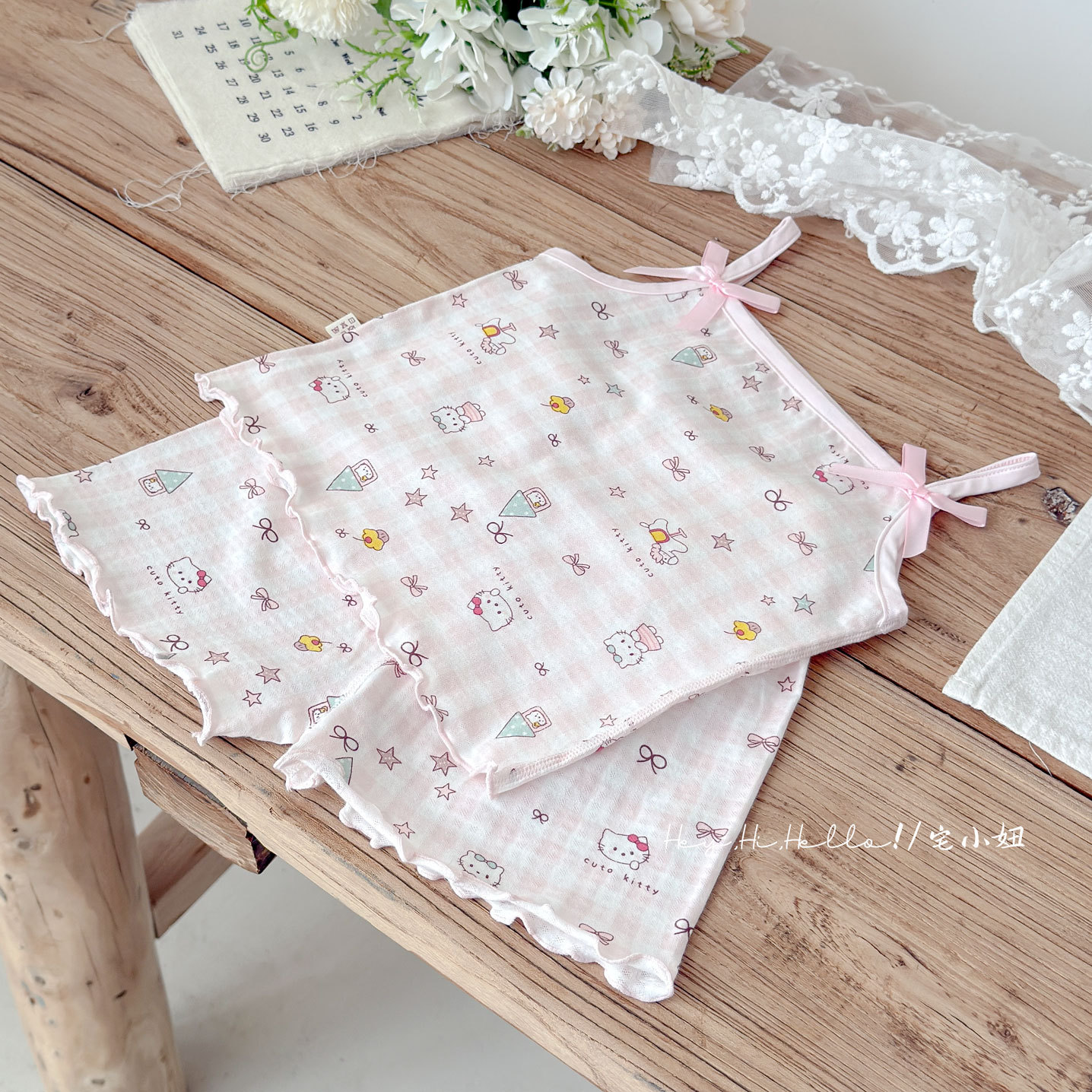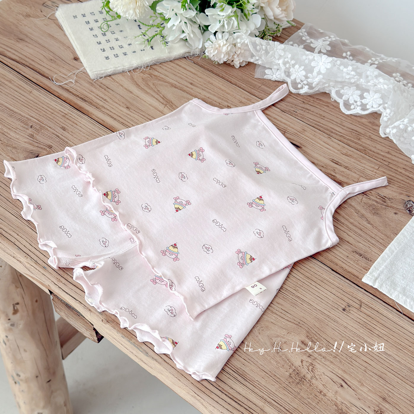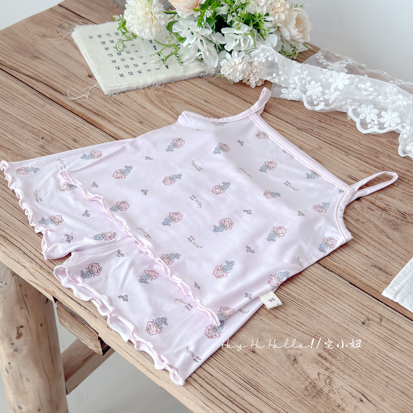 소프트! 소녀 잠옷 여름 얇은 어린이 슬링 반바지 조끼 최고 바지 2 피스 홈 의류 세트