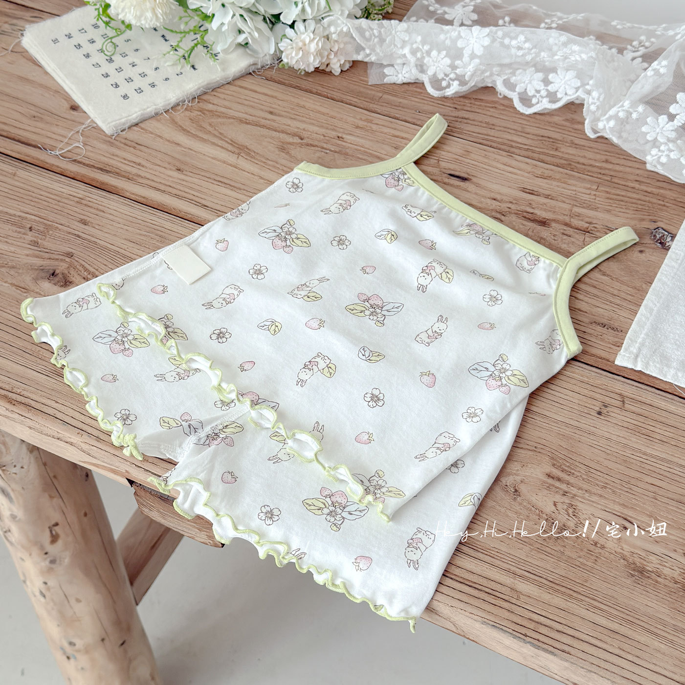 소프트! 소녀 잠옷 여름 얇은 어린이 슬링 반바지 조끼 최고 바지 2 피스 홈 의류 세트스토어 가기