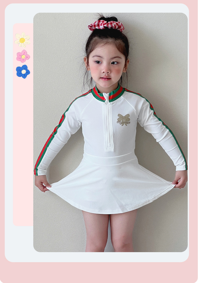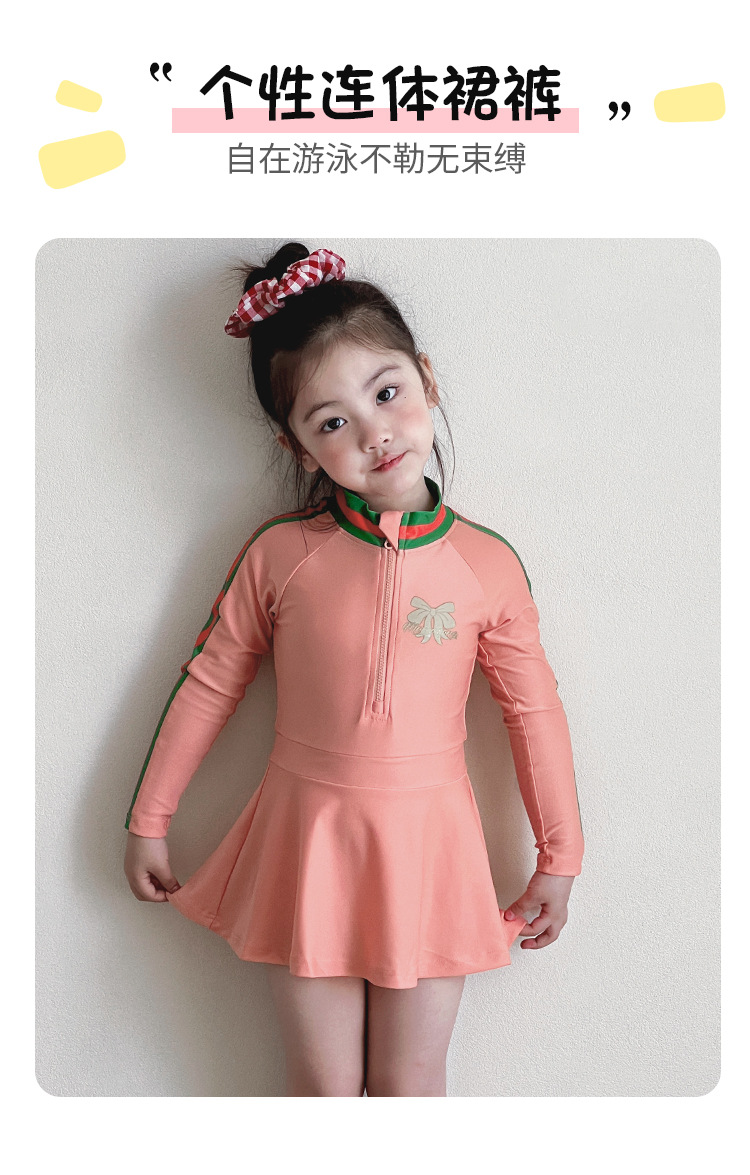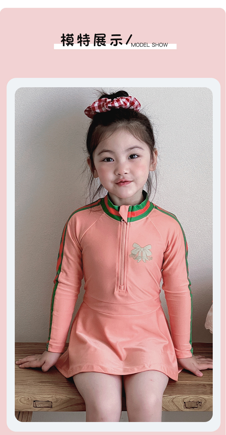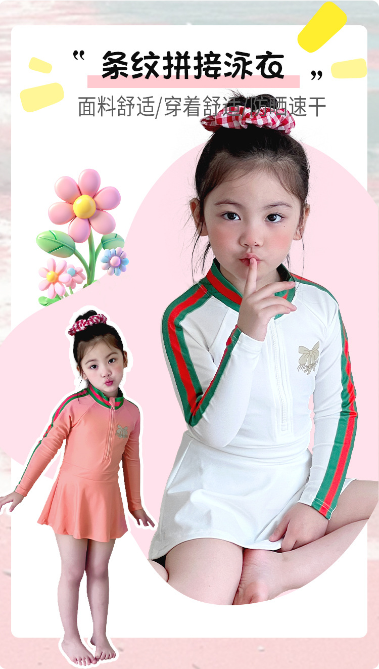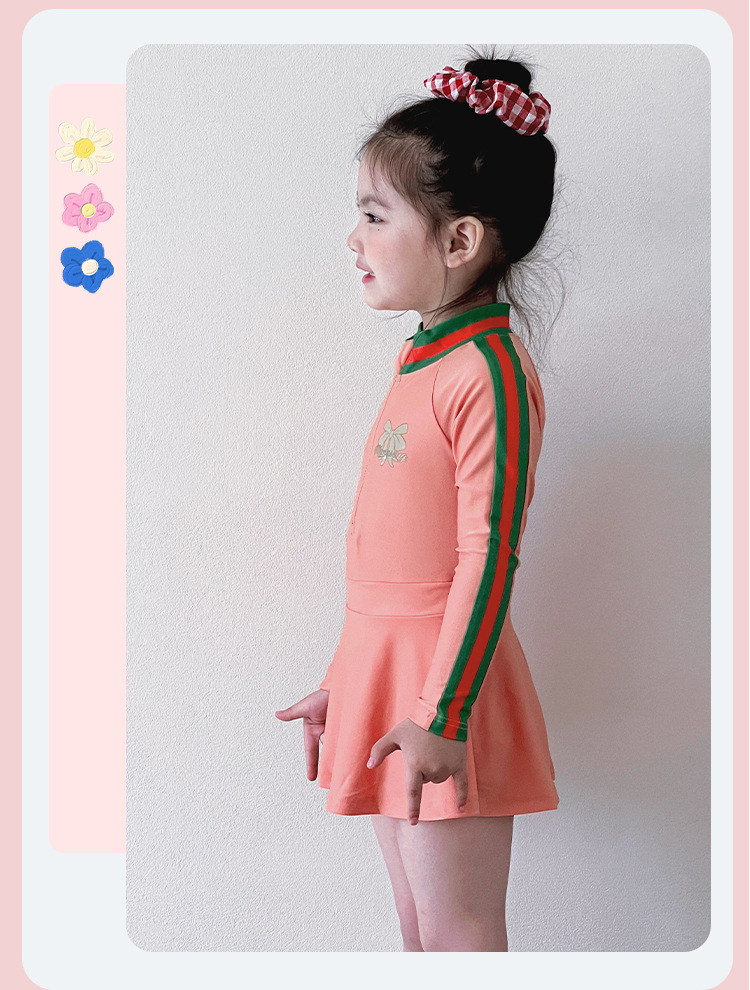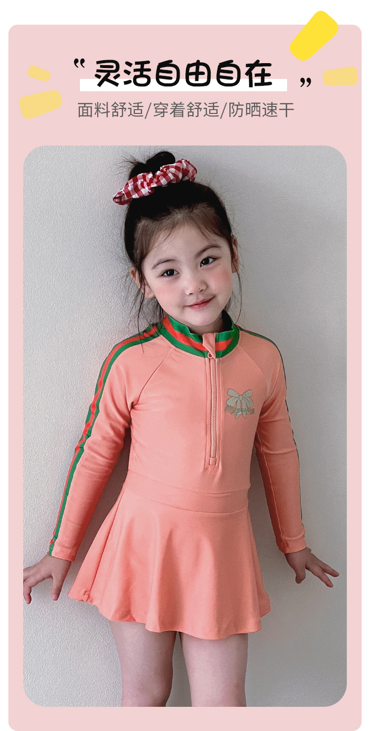 중소형 어린이를 위한 새로운 여아 수영복, 여름 어린이 원피스 스커트 스타일 긴팔 자외선 차단제 속건성 귀여운 여아 수영복