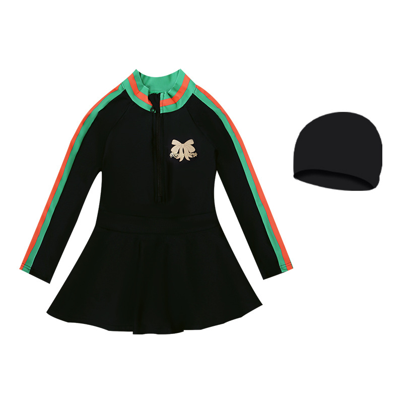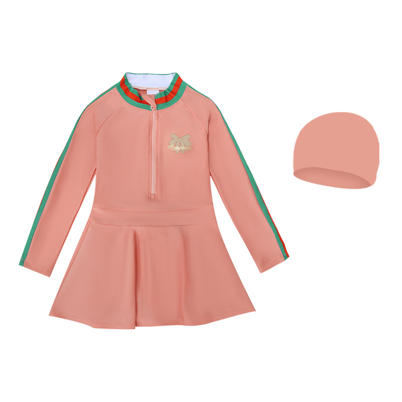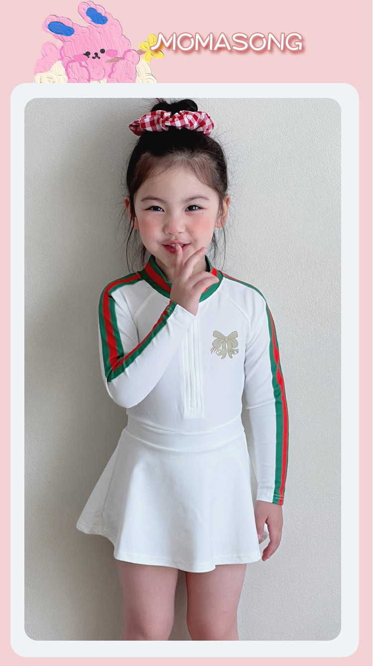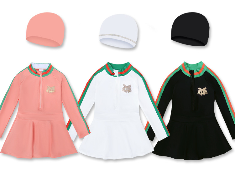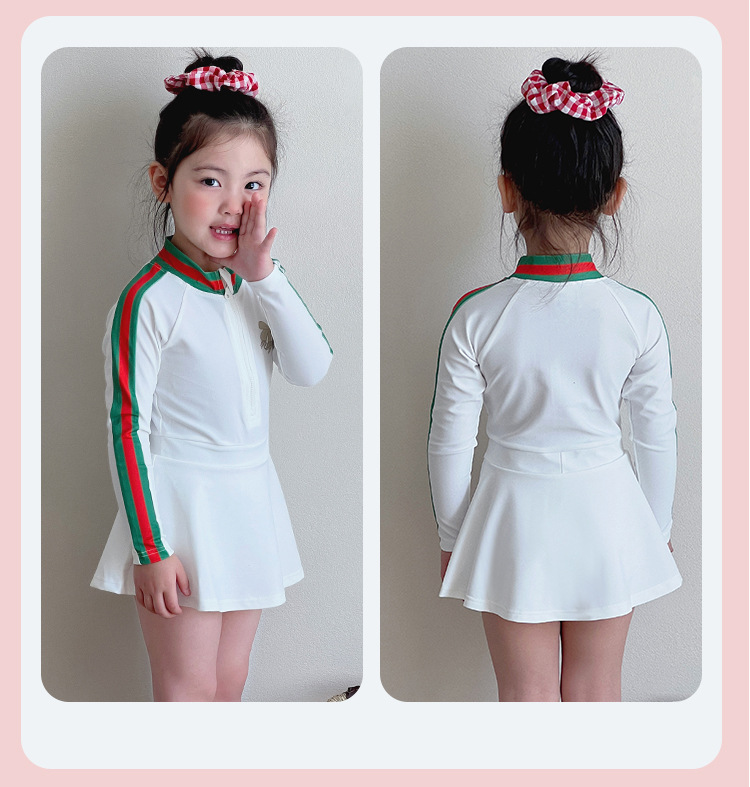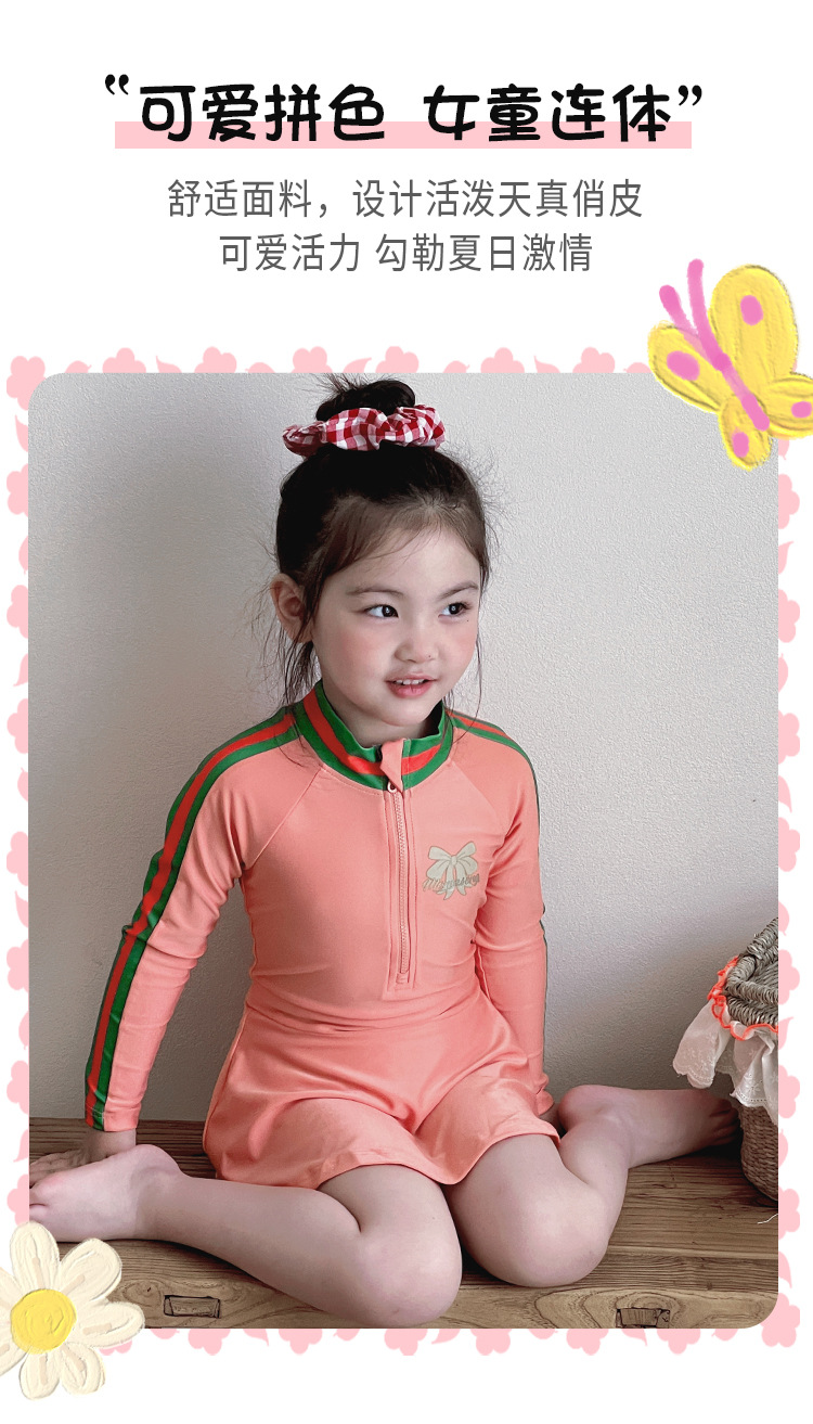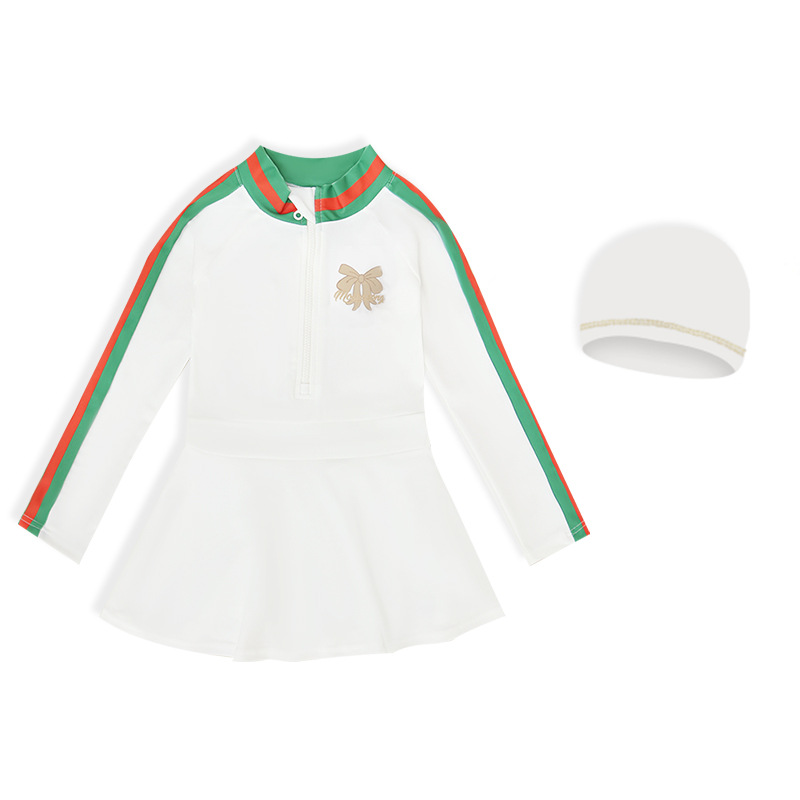 중소형 어린이를 위한 새로운 여아 수영복, 여름 어린이 원피스 스커트 스타일 긴팔 자외선 차단제 속건성 귀여운 여아 수영복