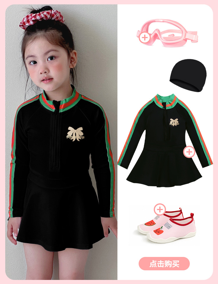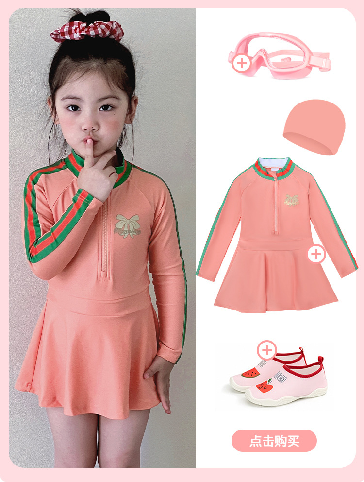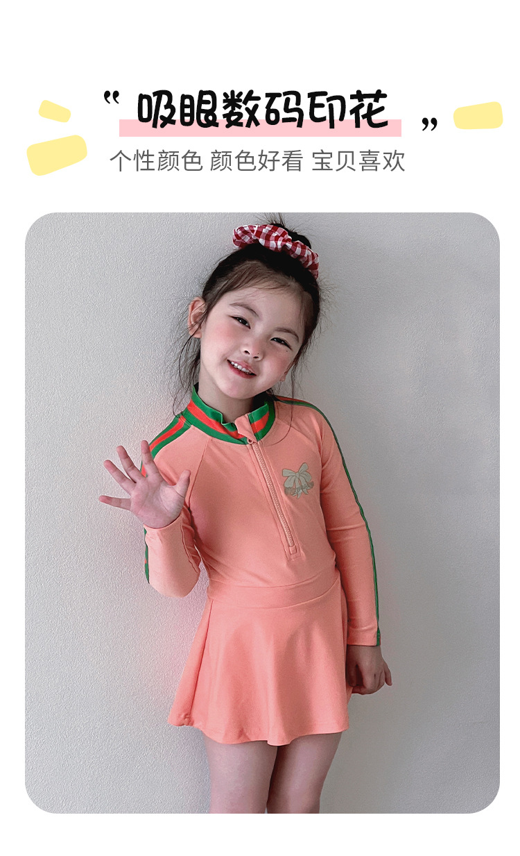 중소형 어린이를 위한 새로운 여아 수영복, 여름 어린이 원피스 스커트 스타일 긴팔 자외선 차단제 속건성 귀여운 여아 수영복스토어 가기