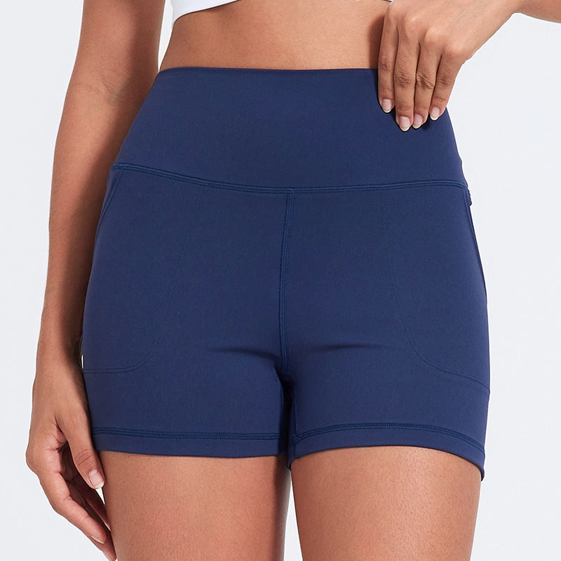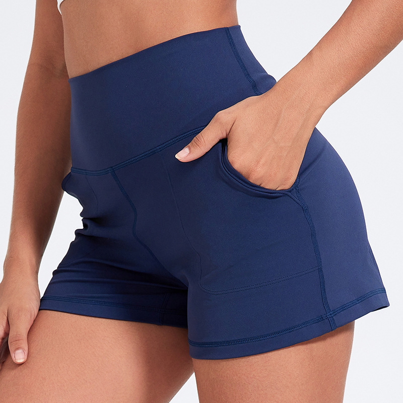 스포츠 캐주얼 반바지 알몸 센스 봄과 여름 요가 반바지 여성 외부 착용 엉덩이 리프팅 피트니스 핫 바지 높은 허리 포켓 3 점 바지