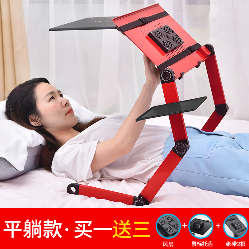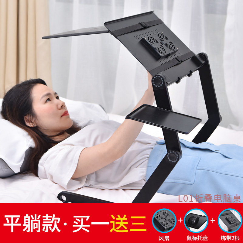침대 위에는 컴퓨터 게으른 책상을 올리고 내리고 접고 접을 수 있으며 노트북 스탠드는 누워서 사무실 사용을위한 교수형 지지대를 볼 수 있습니다.