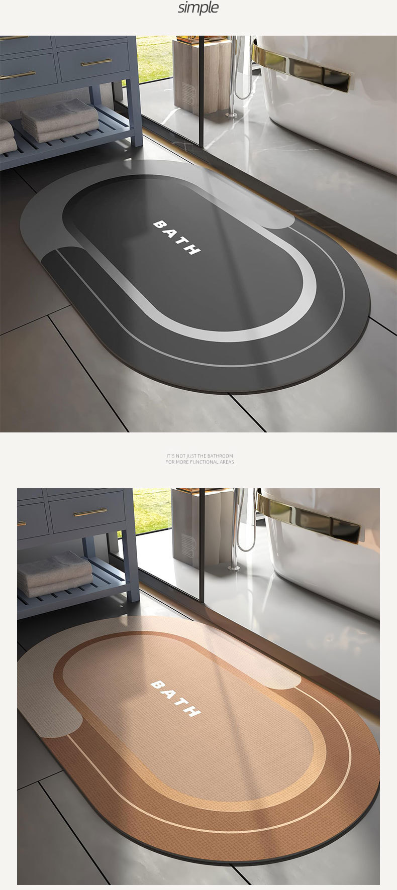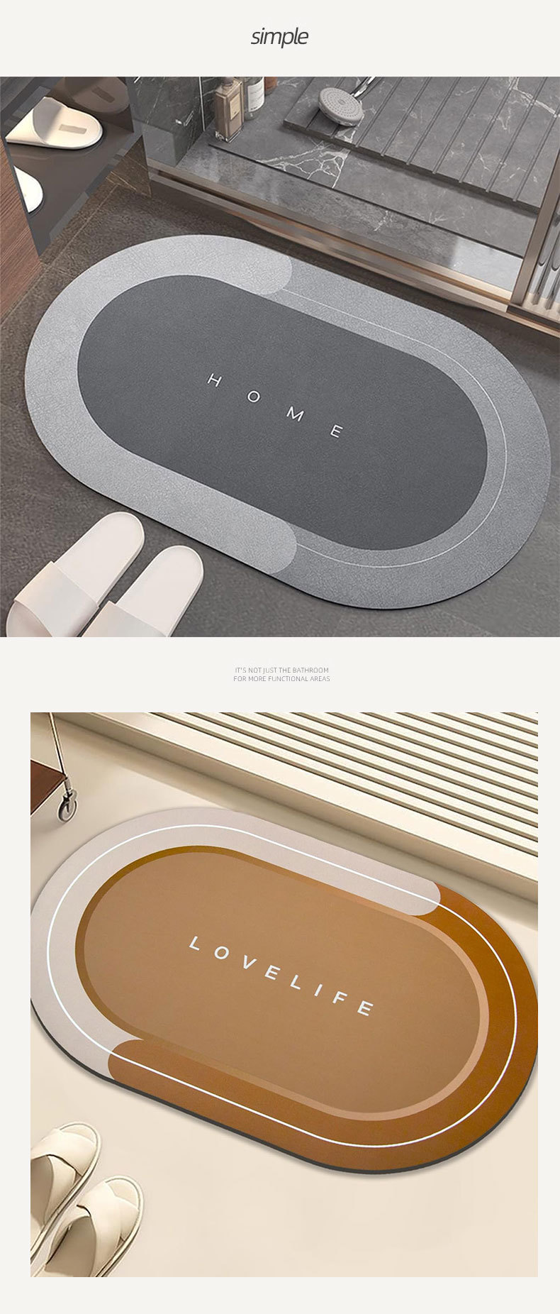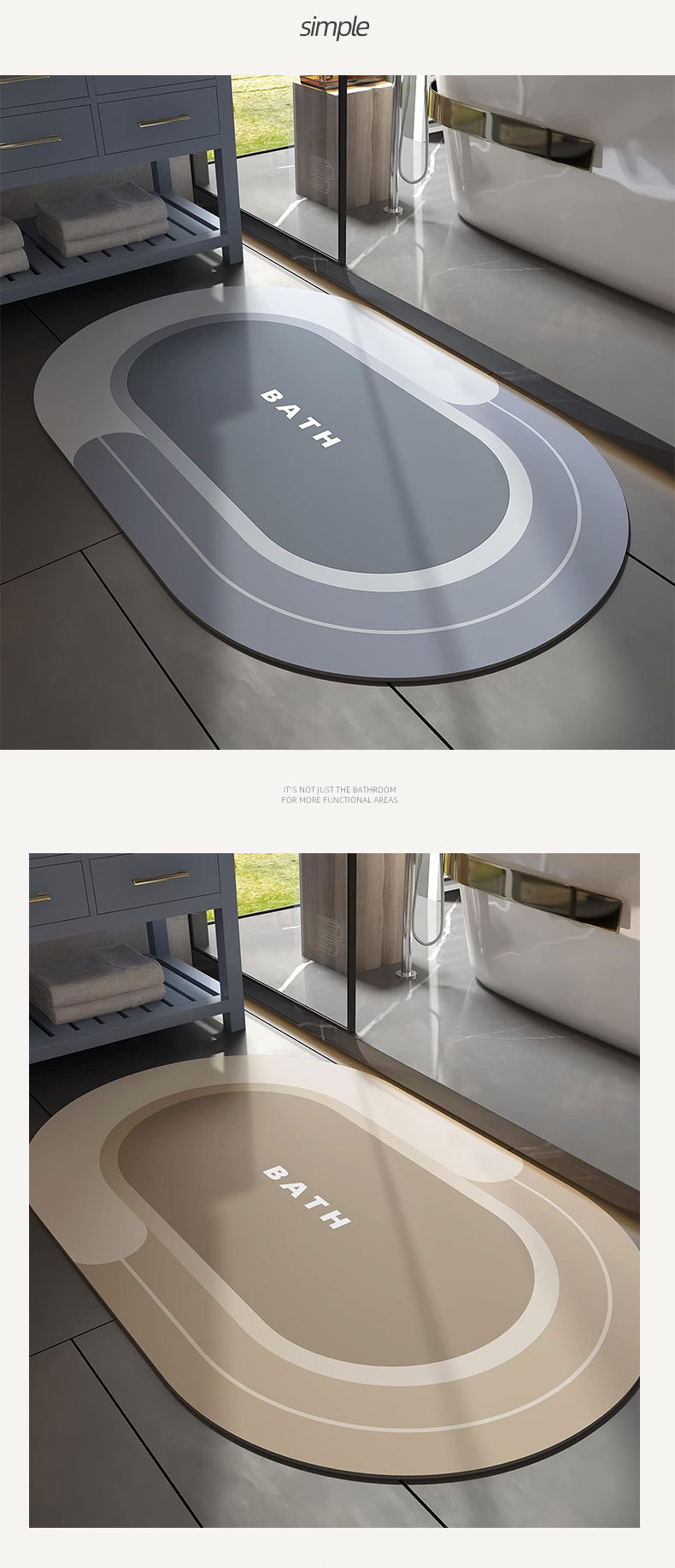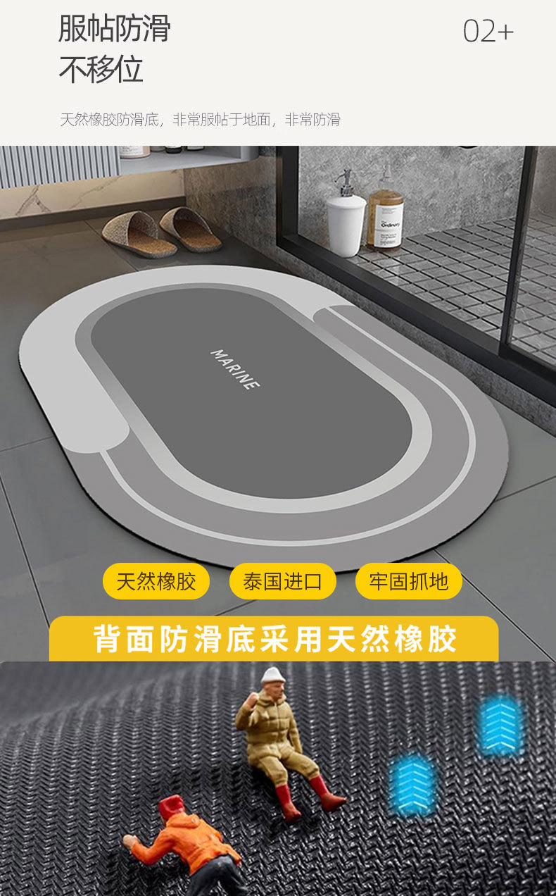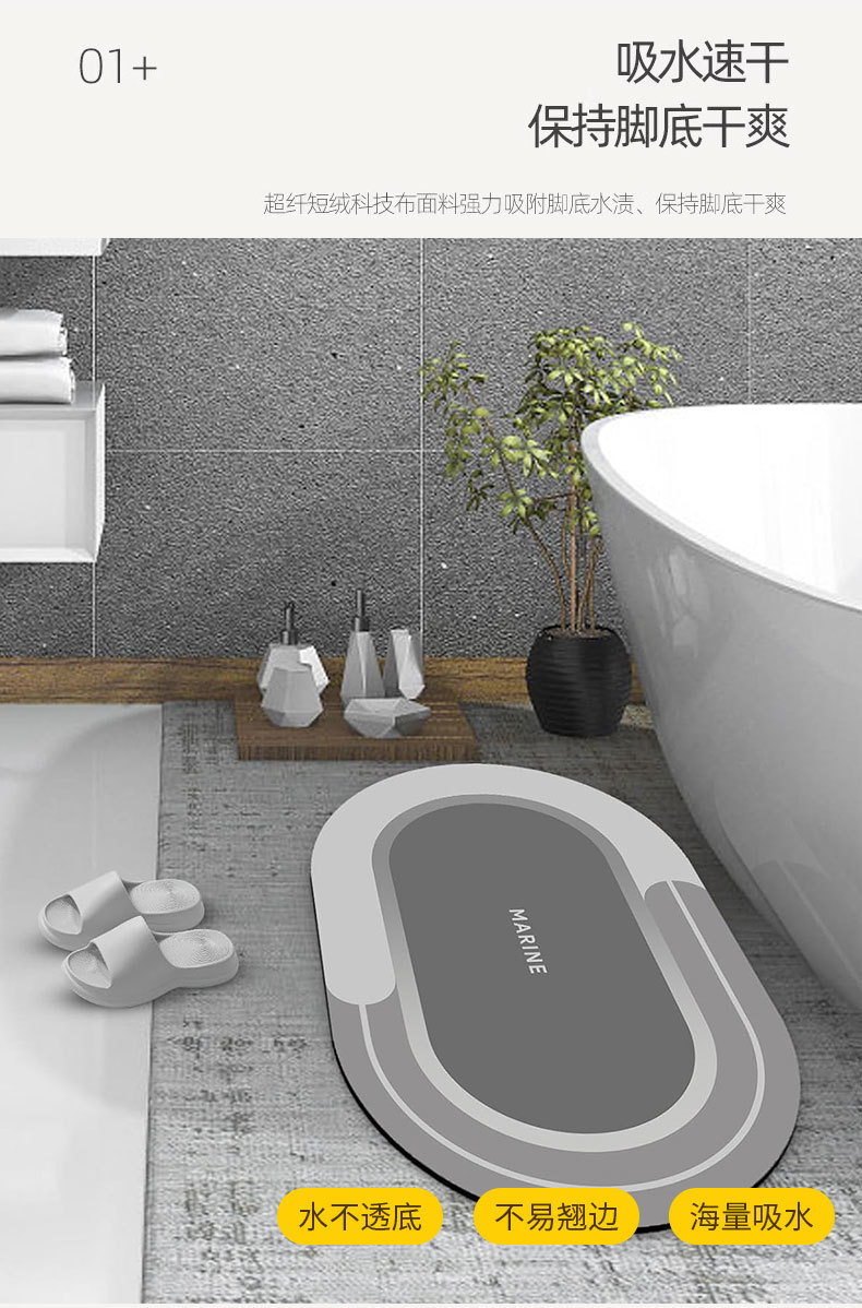 욕실 및 화장실 출입구용 규조토 진흙 바닥 매트, 미끄럼 방지 가정용 화장실 발 매트, 카펫, 집 입구 및 얼룩 방지스토어 가기