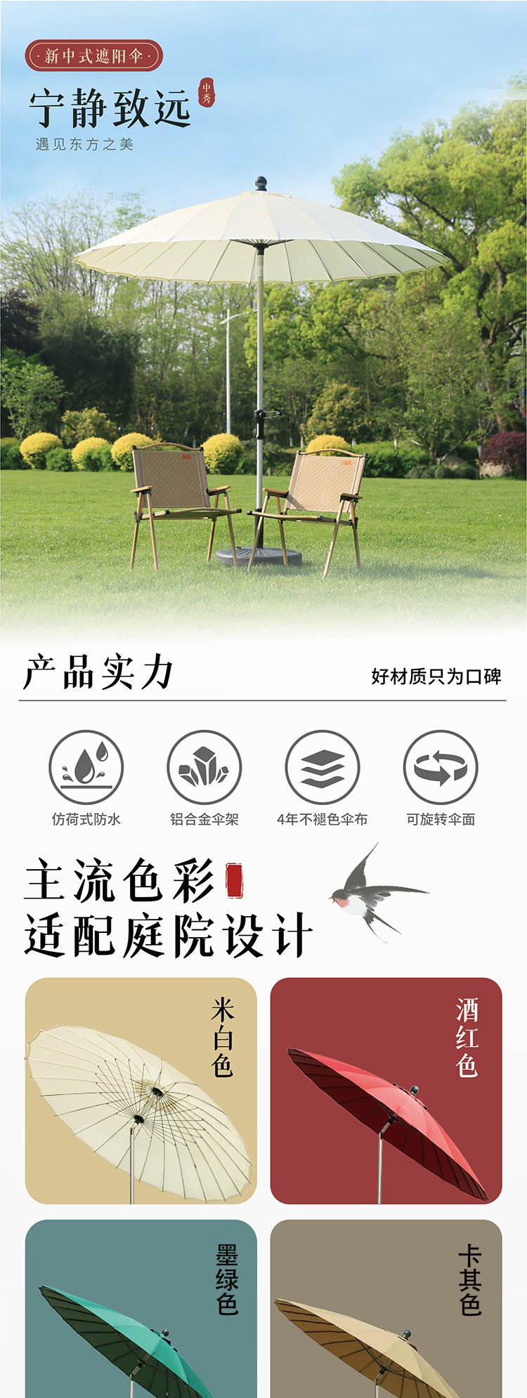 • 2.7m 카키색 유리섬유 우산 + 45kg [바퀴 포함] 물이 채워진 베이스