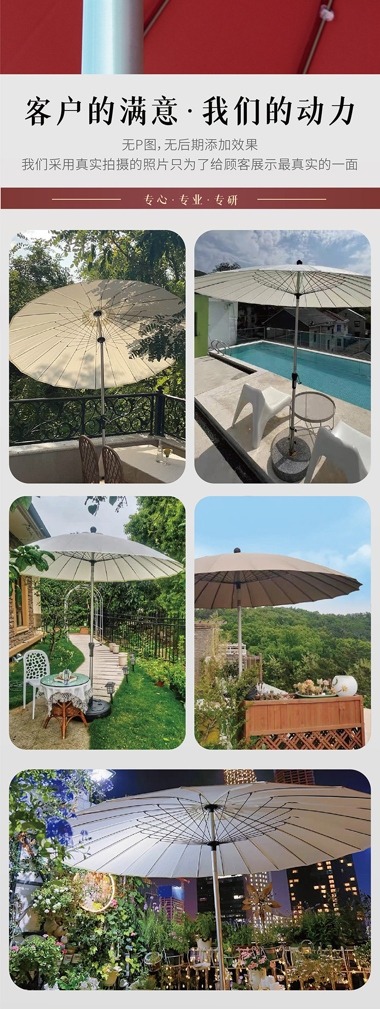 • 2.7m 미색 유리섬유 우산 + 45kg [바퀴 포함] 물이 채워진 베이스
