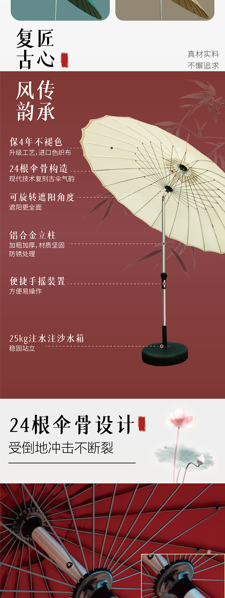 • 갈색 유리섬유 우산 2.7m개 + 물이 채워진 바닥 [바퀴 포함] 45kg개