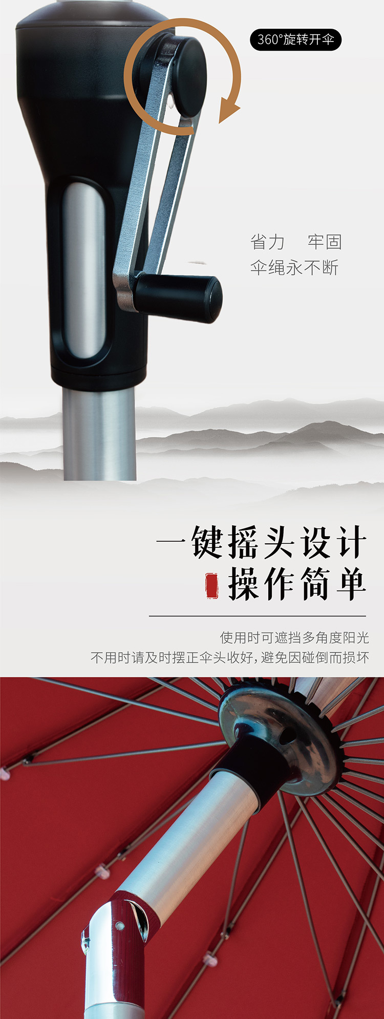 야외 그늘 Shook 머리 우산 터닝 우산 정원 우산 빌라 손으로 크랭크 팔꿈치 우산 테라스 우산 스톨 우산