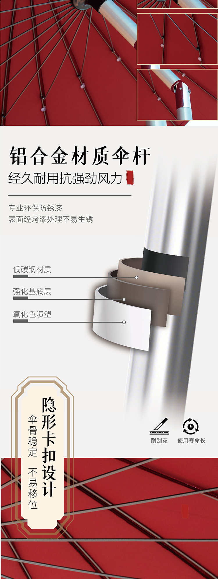 • 2.7m 버건디 유리섬유 우산 + 45kg [바퀴 포함] 물이 채워진 베이스