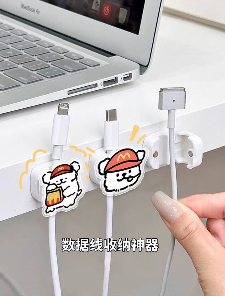 绅士小狗数据线固定器免打孔桌边理线器电源线卡扣充电线固定夹子