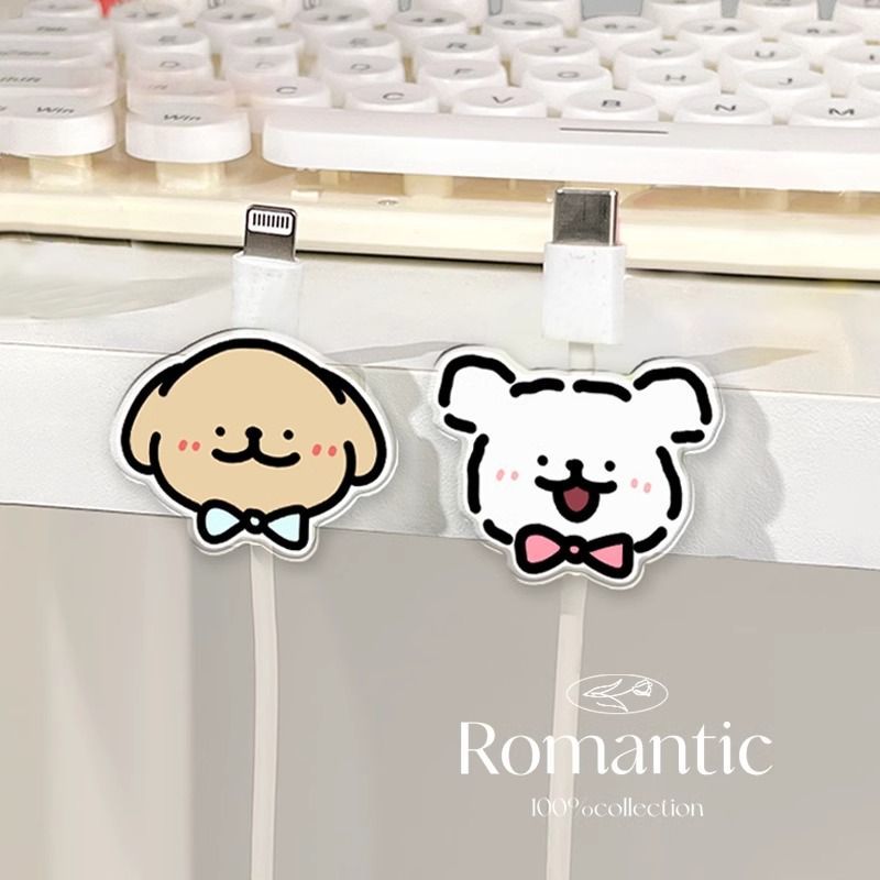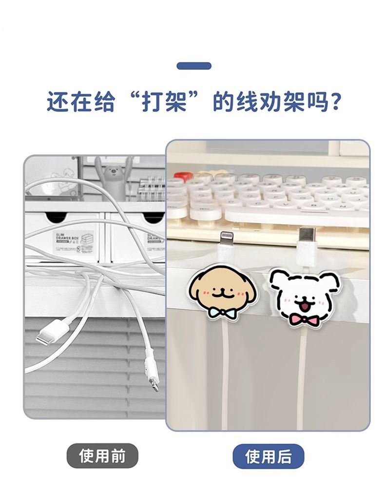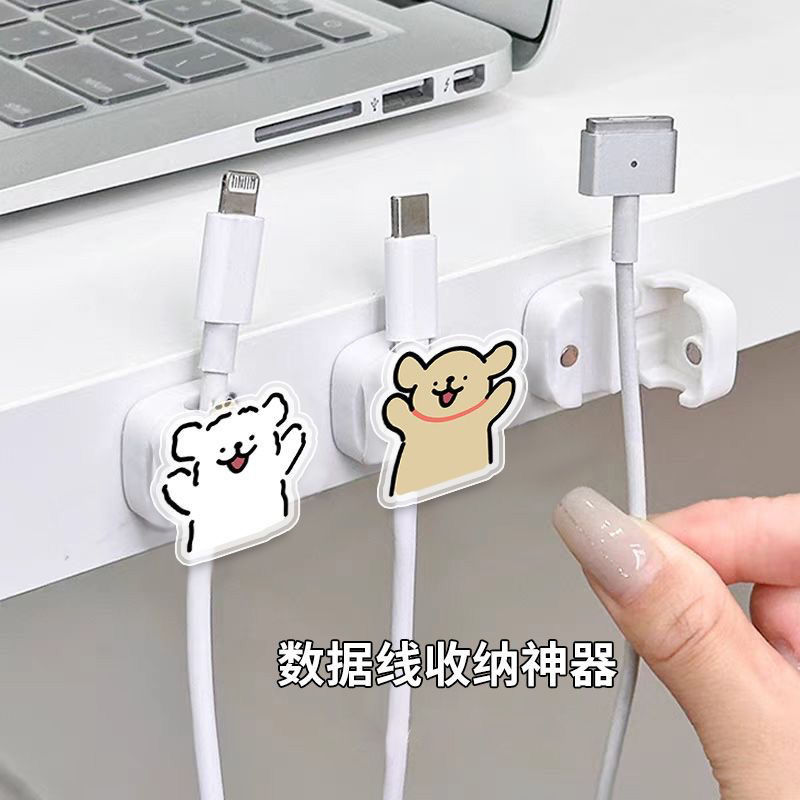 신사 강아지 데이터 케이블 홀더 펀치 없는 책상 케이블 정리기 전원 코드 버클 충전 케이블 고정 클립스토어 가기