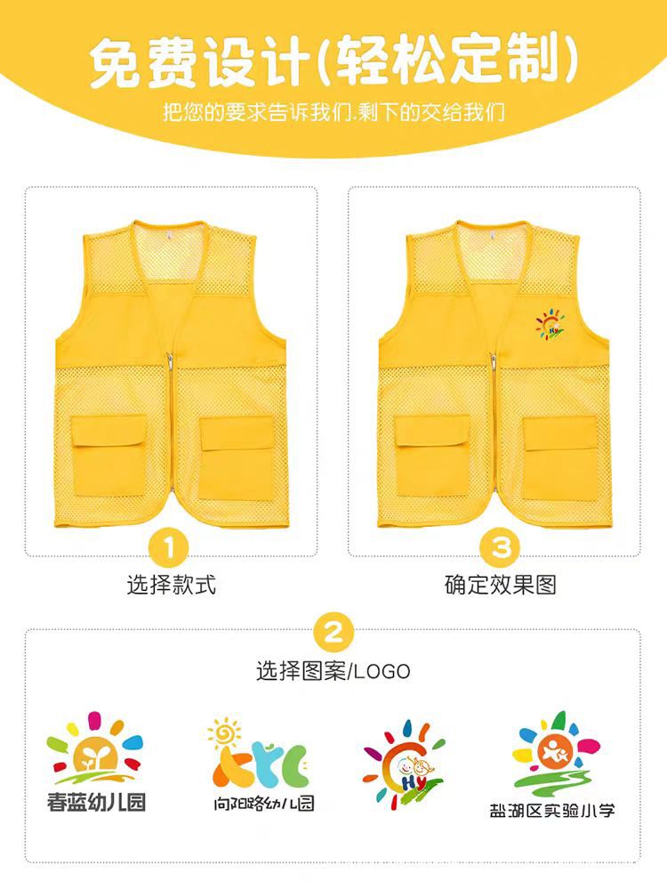 어린이 조끼 로고 맞춤형 유치원 과외 기관 훈련 보호 여름 캠프 야외 부모-자식 봄 나들이 조끼스토어 가기