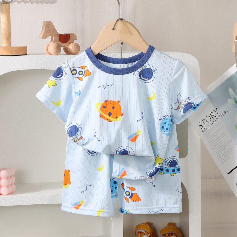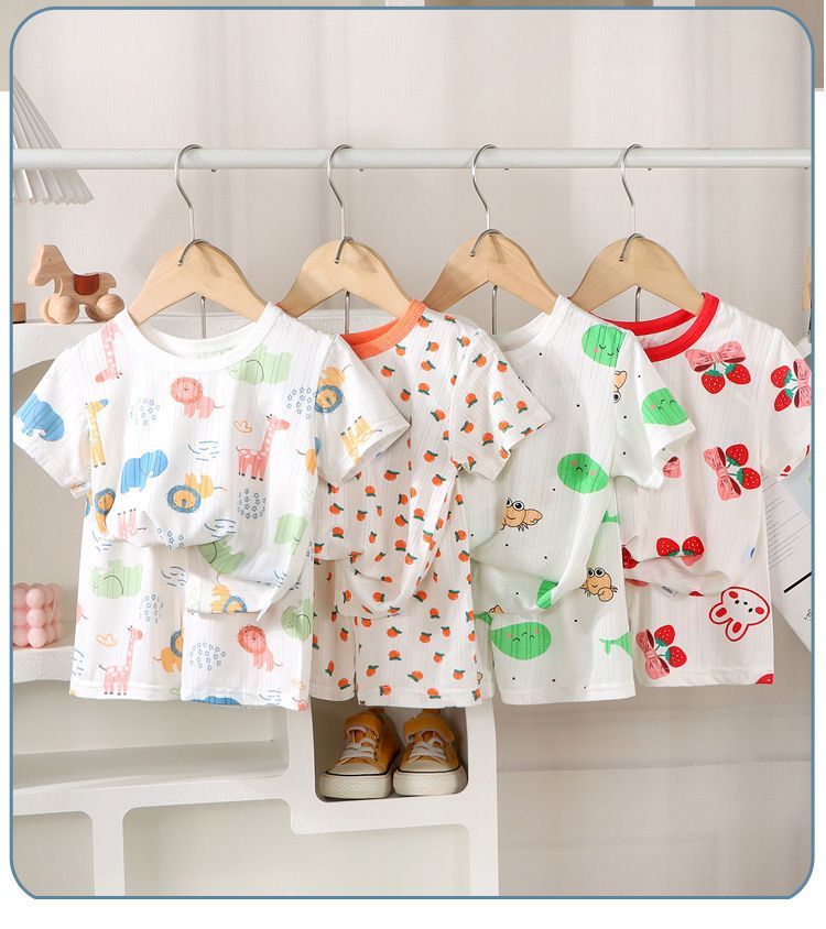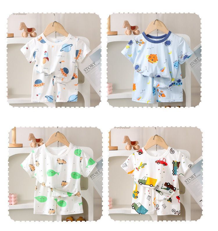 아동복 새로운 가정복 여름 얼음 실크 얇은 반팔 소년과 소녀 에어컨 투피스 아기 잠옷스토어 가기