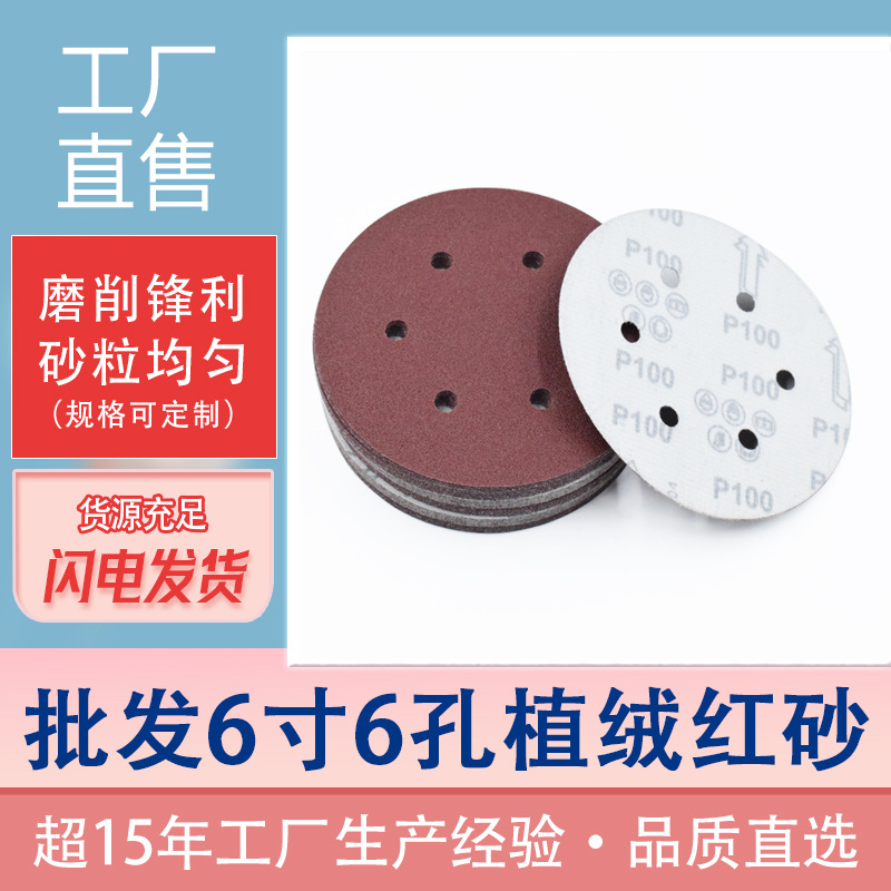 도매 레드 샌드 6 인치 6 홀 150mm 레드 샌드페이퍼 벨벳 디스크 샌드페이퍼 자체 접착 플로킹 샌드페이퍼 연마 샌드페이퍼스토어 가기
