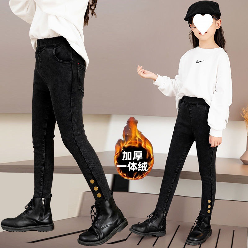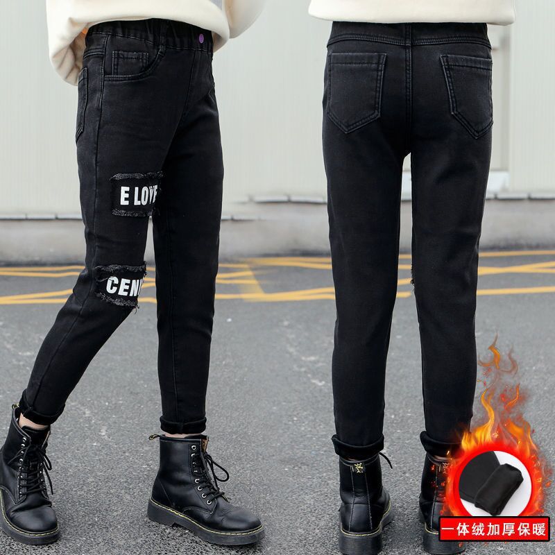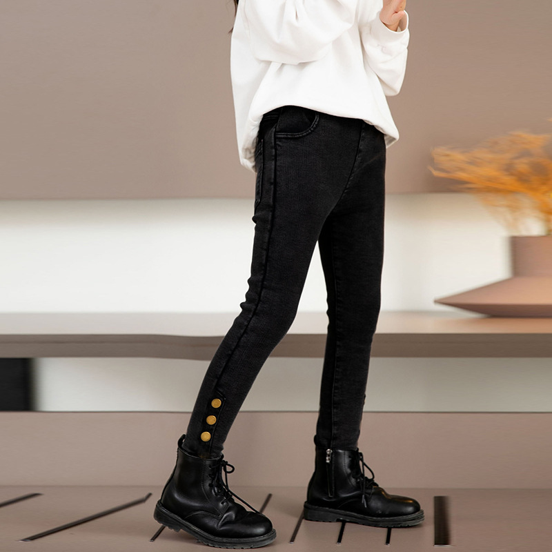아동복, 여아용 청바지, 벨벳과 두꺼운 겨울 중대형 아동용 원피스 벨벳 아우터, 캐주얼 하의, 아동용 면바지스토어 가기