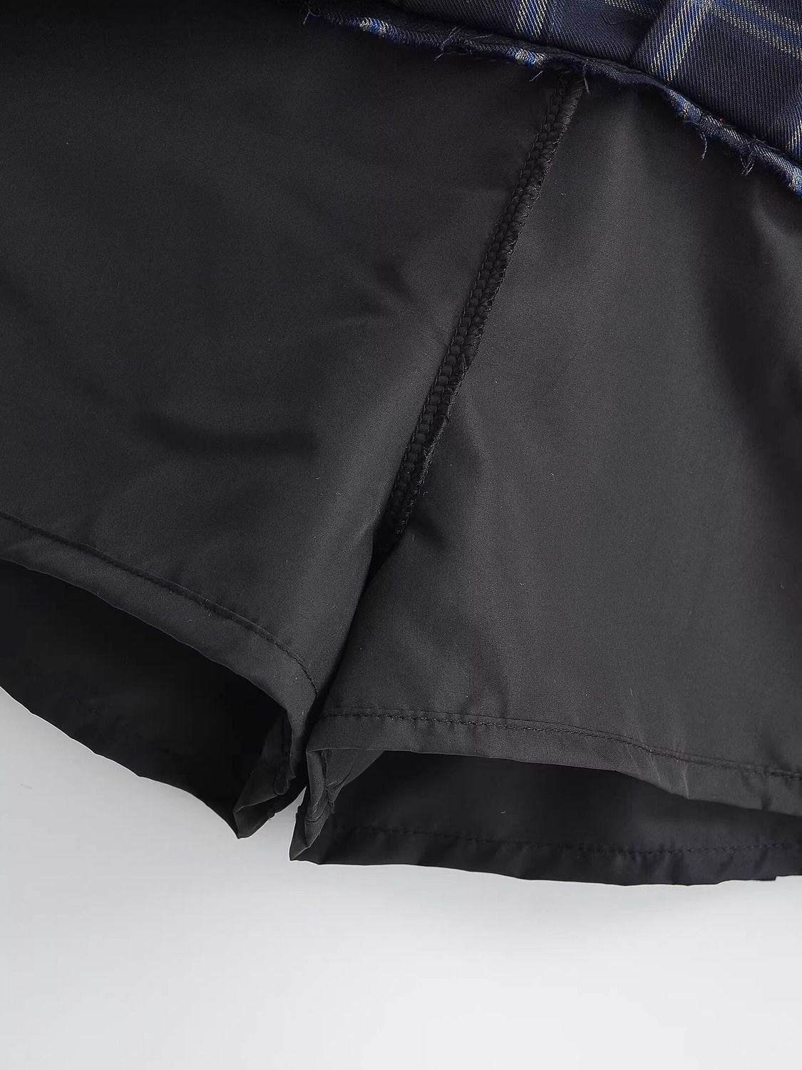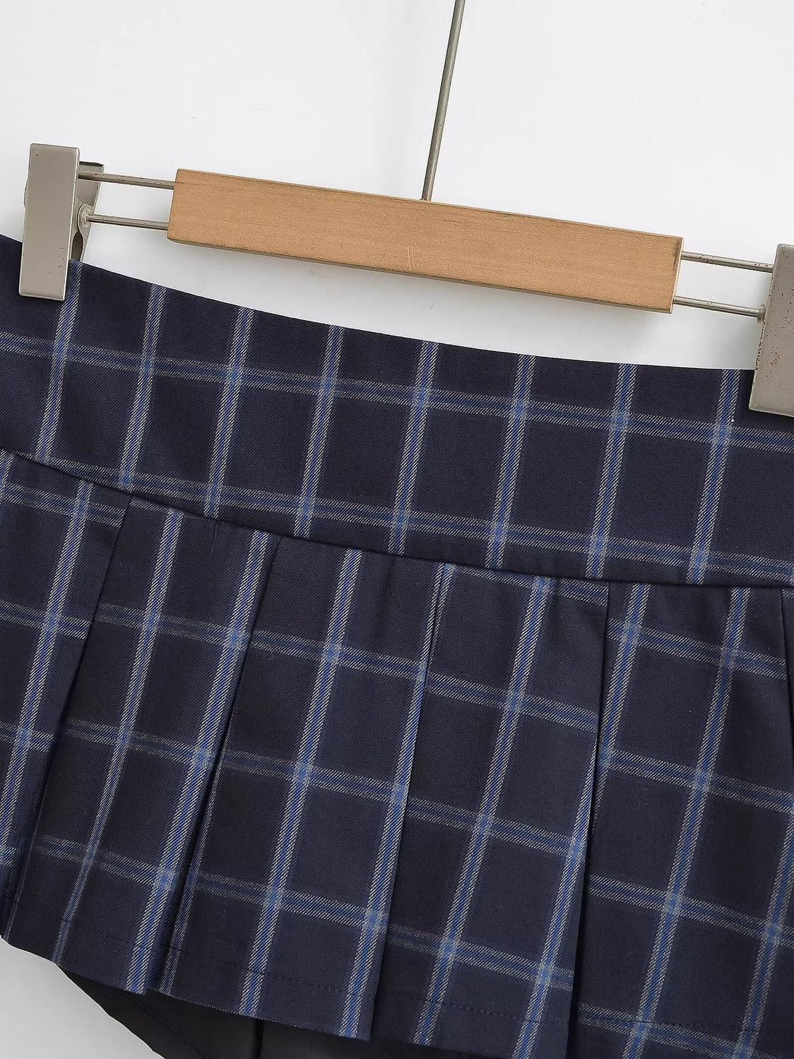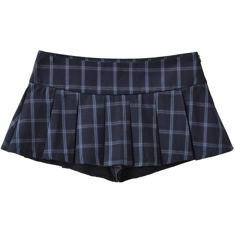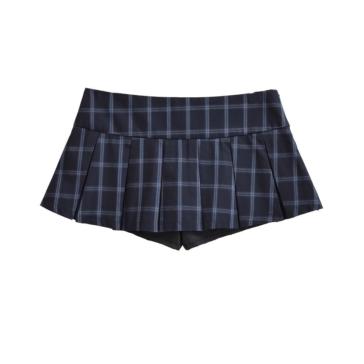 아메리칸 핫걸 섹시 로우 웨이스트 쇼트 미니 플리츠 스커트 여름 노출 방지 A라인 퓨어 러브 jk 체크 스커트