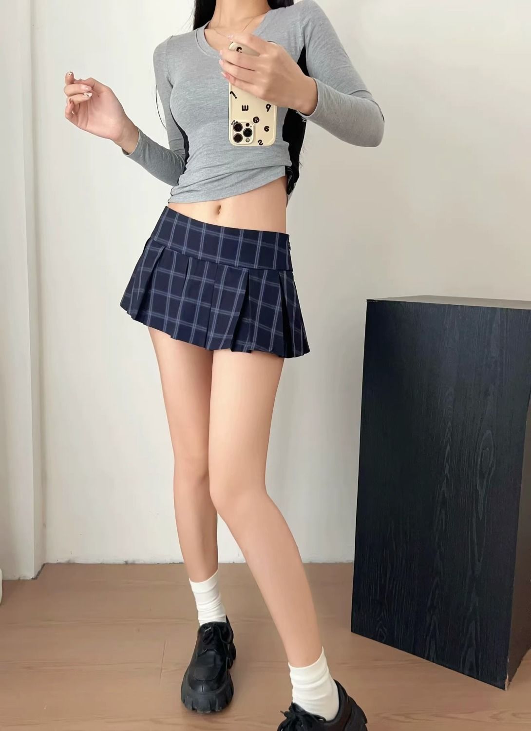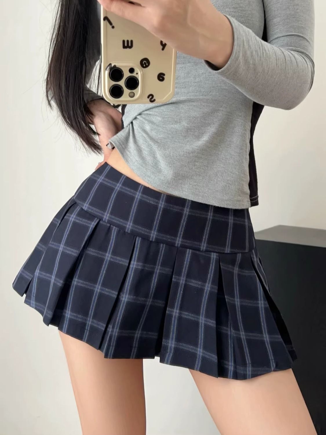 아메리칸 핫걸 섹시 로우 웨이스트 쇼트 미니 플리츠 스커트 여름 노출 방지 A라인 퓨어 러브 jk 체크 스커트스토어 가기