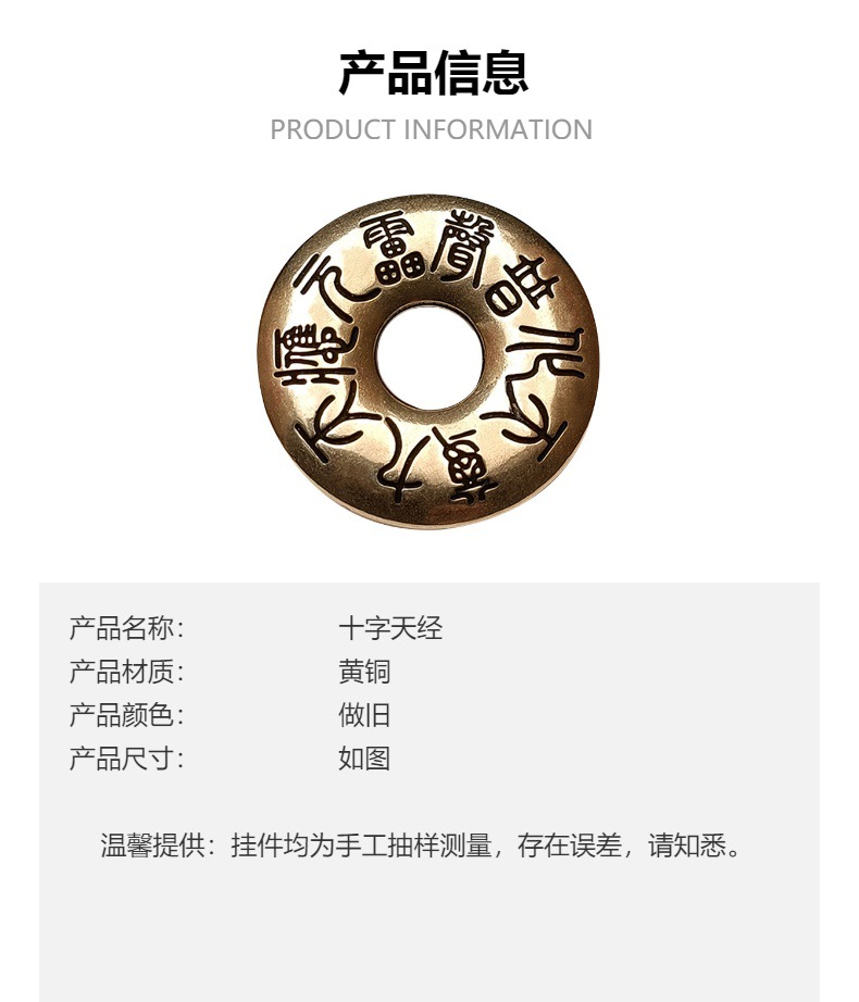 황동 도교 십자가 천경 평화 버클 키 체인 펜던트 복고풍 작은 구리 펜던트 남여 펜던트스토어 가기