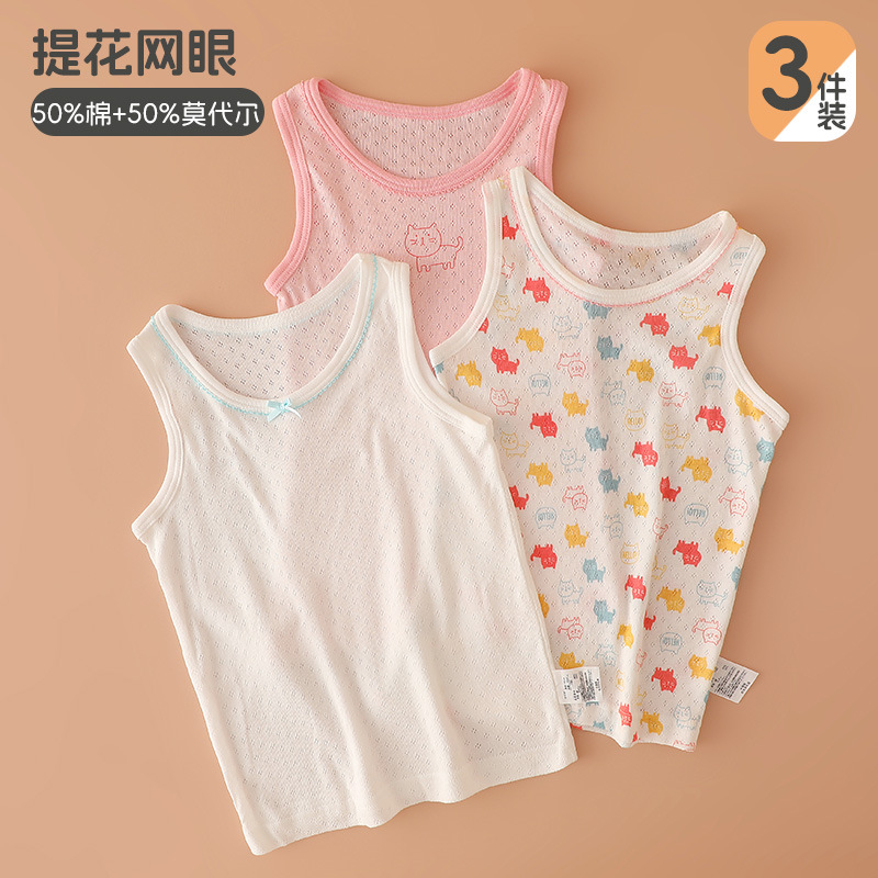 일본 3 피스 소녀 조끼 여름 얇은 순면 아기 소녀베이스 셔츠 초등학생 외복 탑 민소매스토어 가기