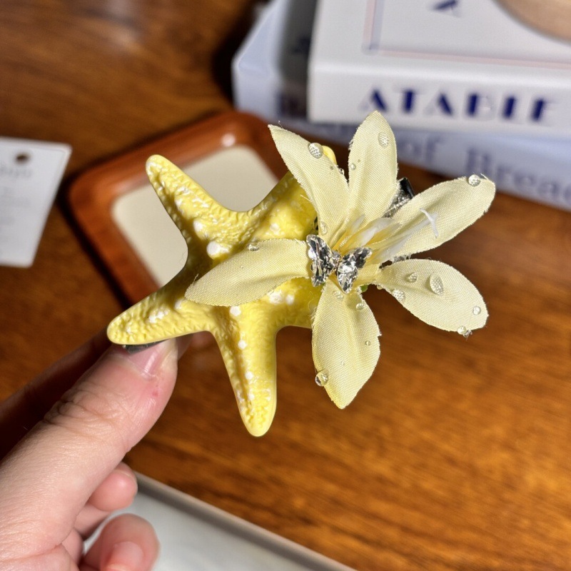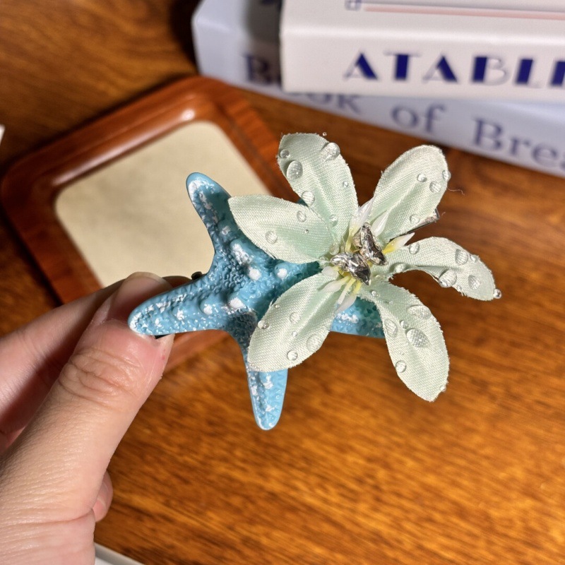 도파민 불가사리 꽃 머리핀 달콤한 시원한 바람 해변 휴가 분위기 덕빌 뱅 사이드 클립 헤어 헤드웨어