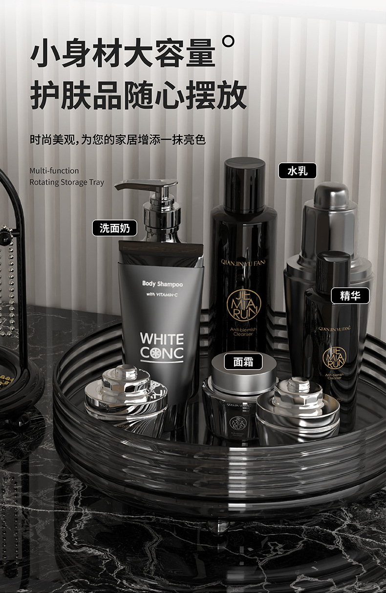 데스크탑 회전식 보관함 360 ° 회전식 수납 선반 주방 조미료 선반 화장품 트레이 수납 선반