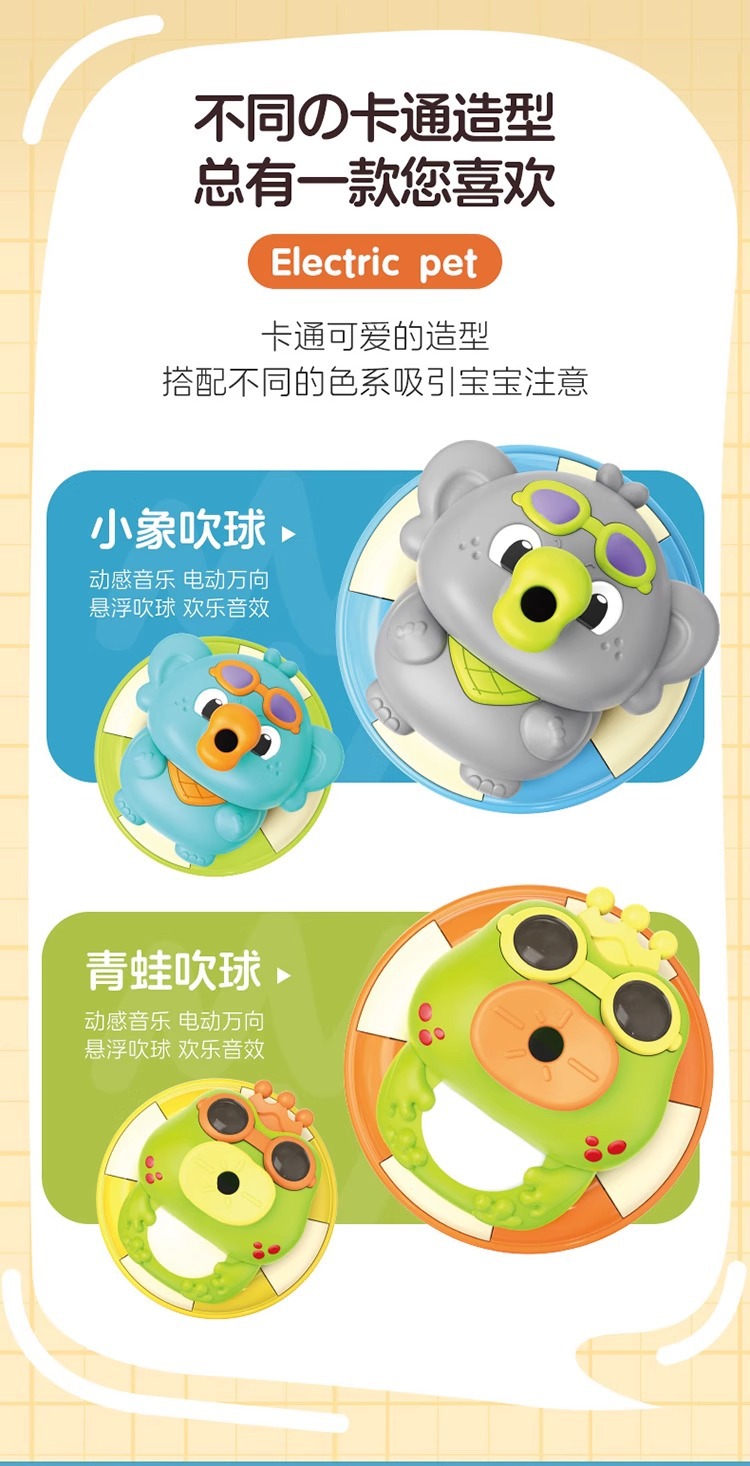 새로운 전기 공 부는 귀여운 코끼리 작은 개구리 아기 아기 전기 장난감 음악 조명 도매 어린이 장난감스토어 가기