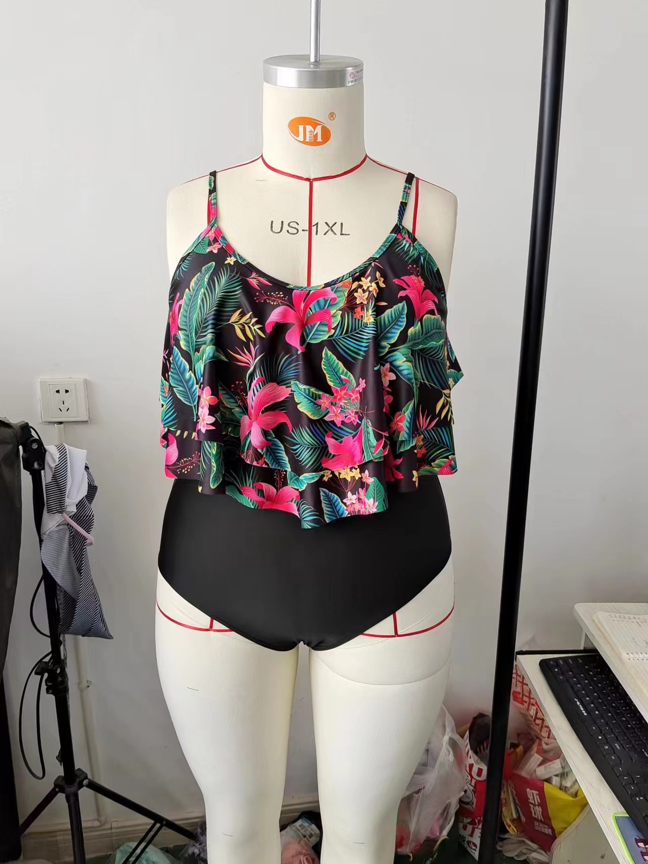 유럽과 미국의 2025 새로운 플러스 사이즈 수영복 여성 인쇄 플러스 사이즈 비키니 아마존 뚱뚱한 여자 수영복스토어 가기