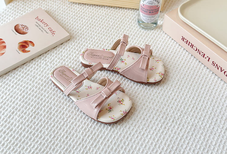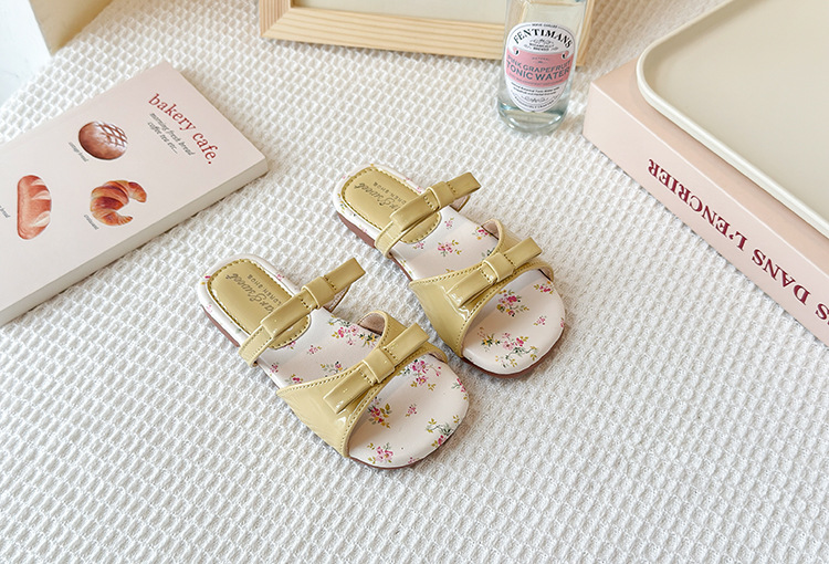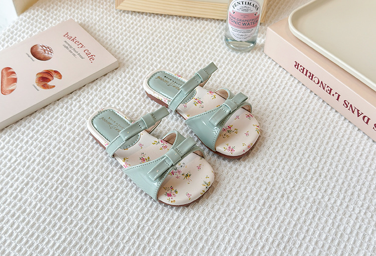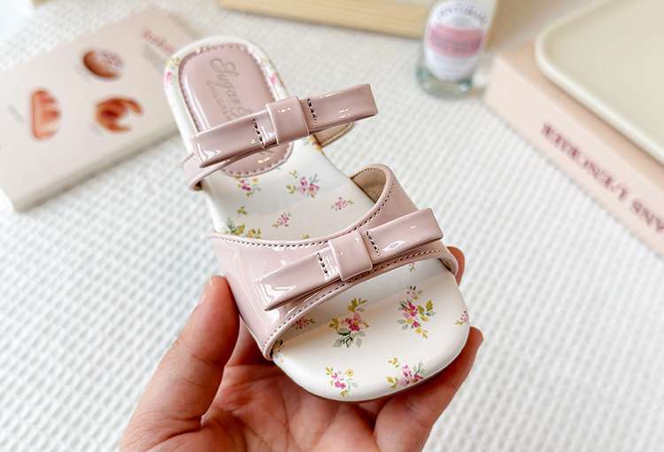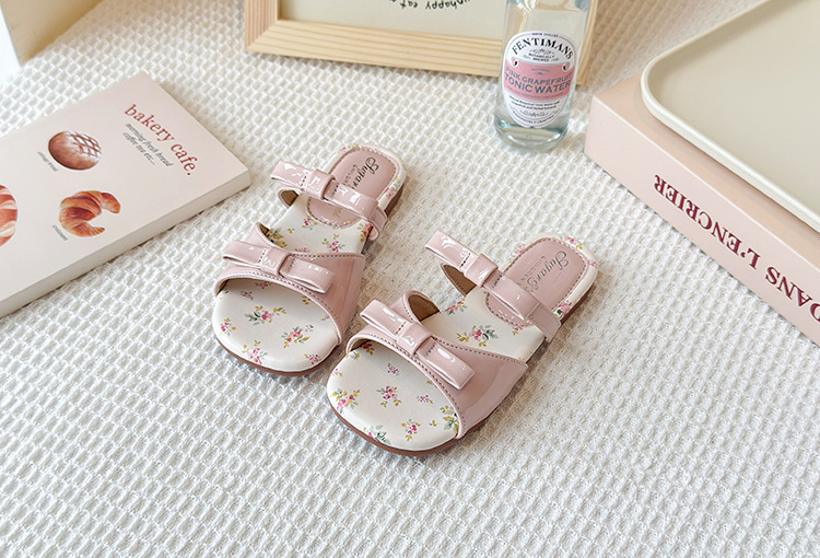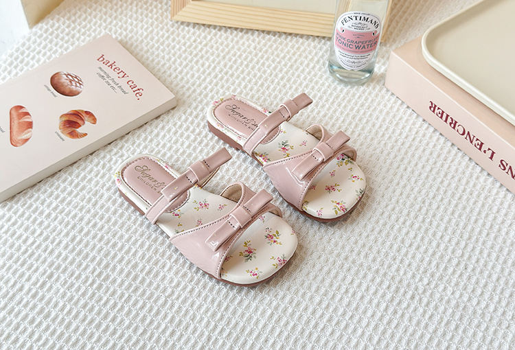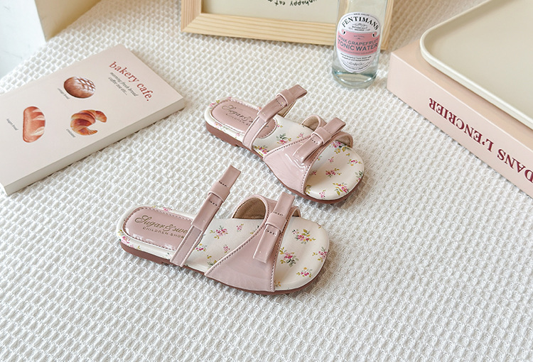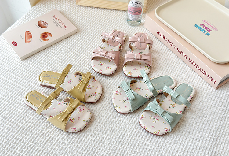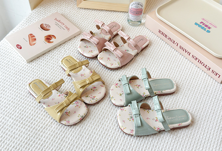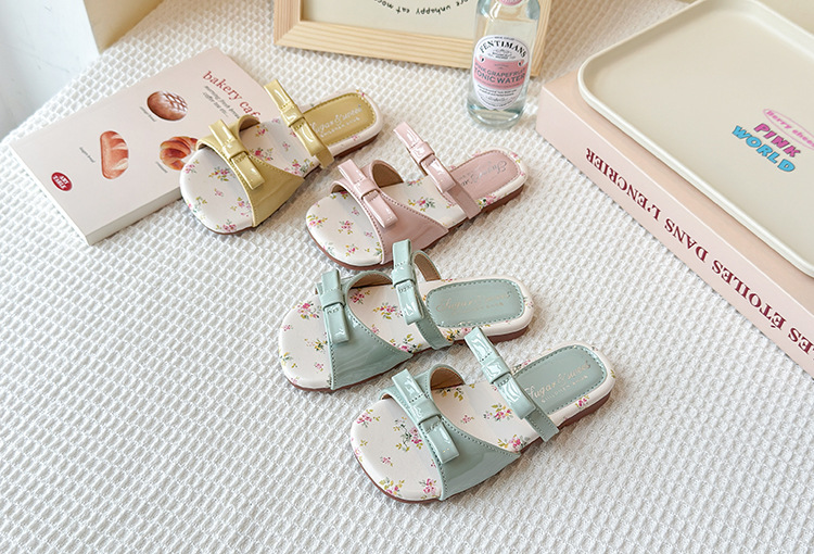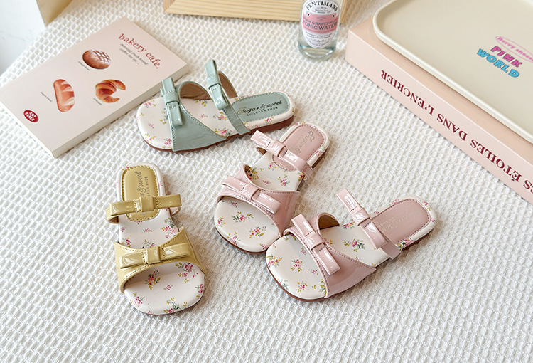 어린이 꽃 플랫 슬리퍼 2025 여름 새 한국 스타일 소녀 활 한 단어 공주 신발 치마스토어 가기