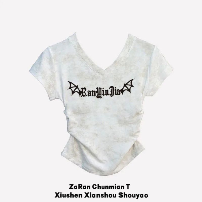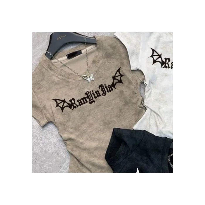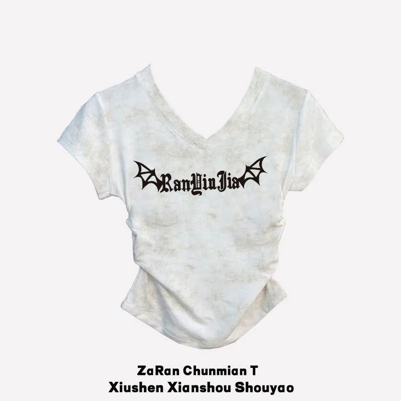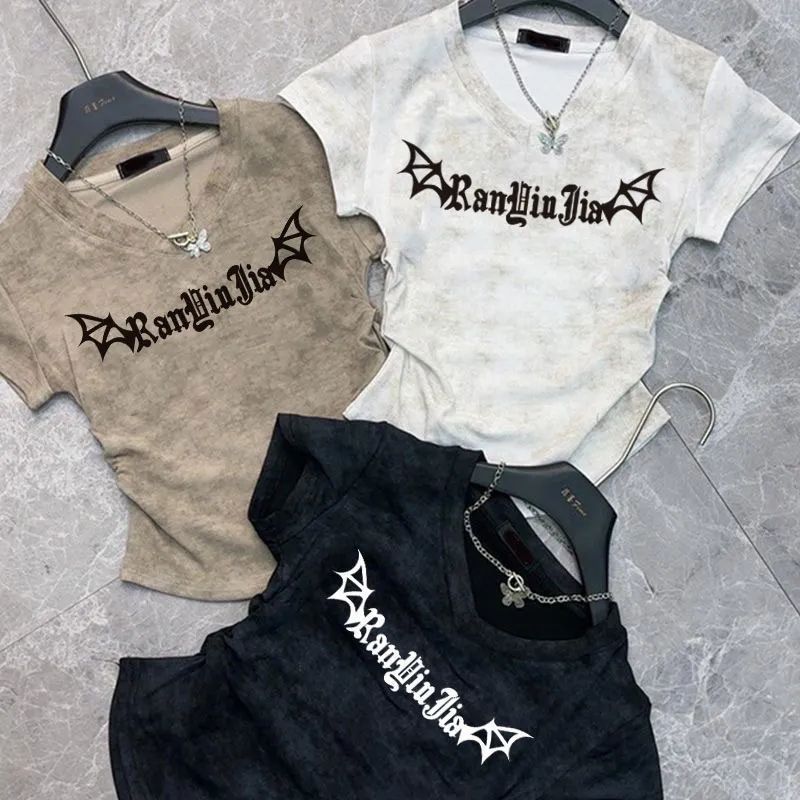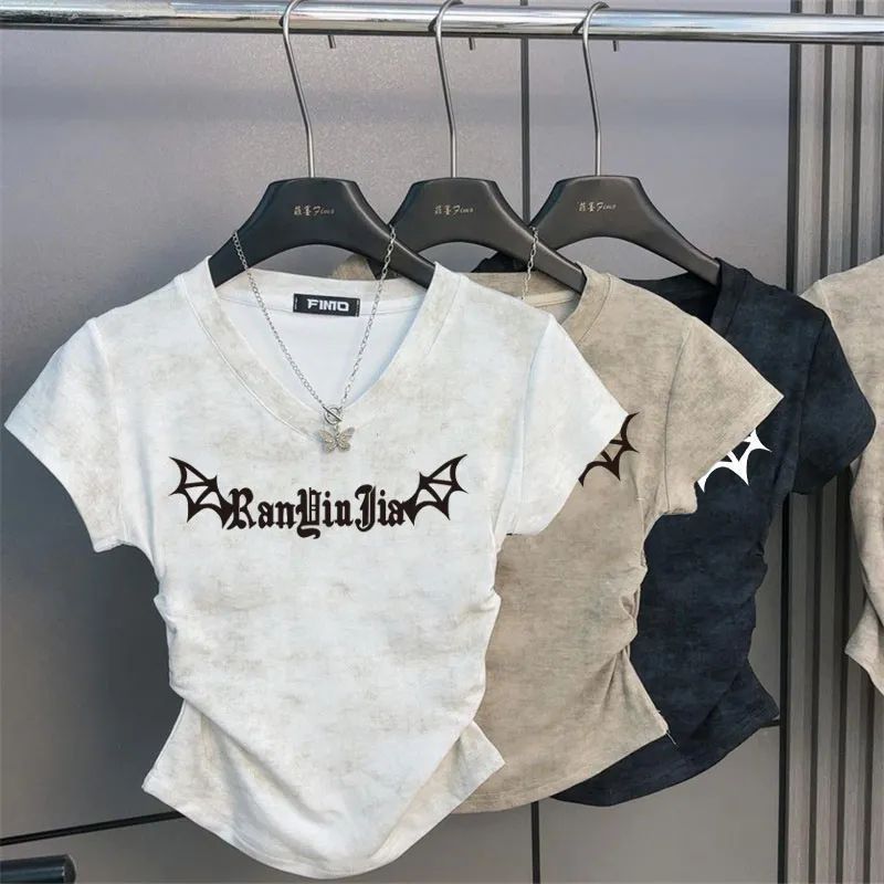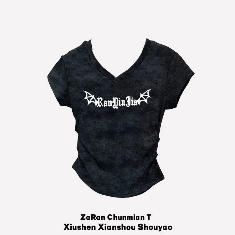 반팔 소녀 2025 여름 짧은 티셔츠 새로운 슬림 핏 슬림 패션 V 넥 패션면 다용도 탑스토어 가기
