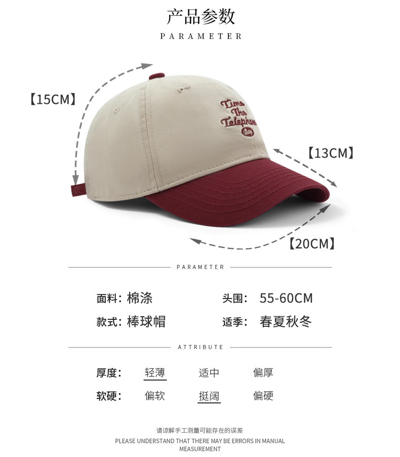뉴 아메리칸 스타일 올 매치 콘트라스트 컬러 소프트 탑 야구 모자 여자 봄과 여름 올 매치 썬 햇 빅 헤드 쇼페이스 스몰 캡
