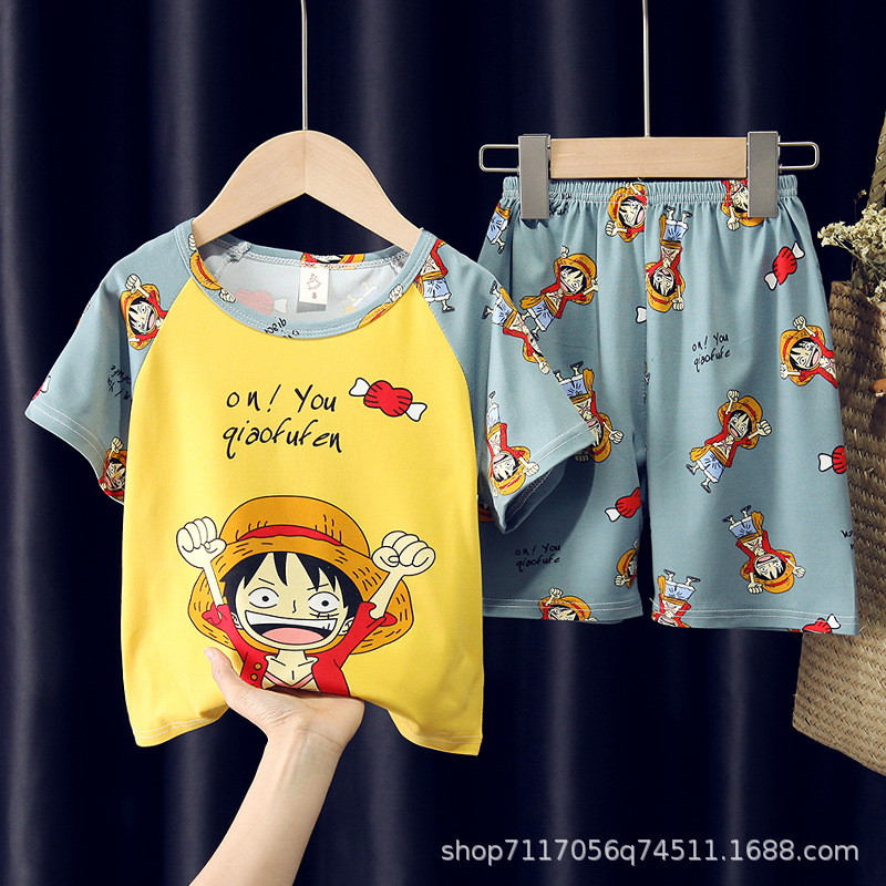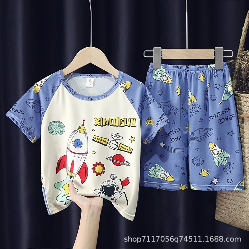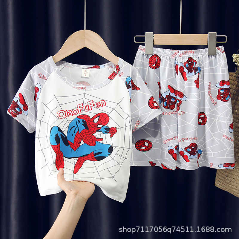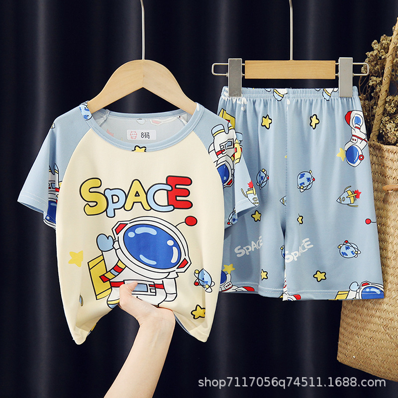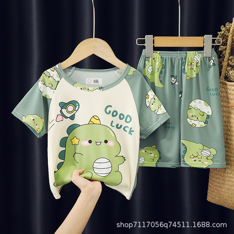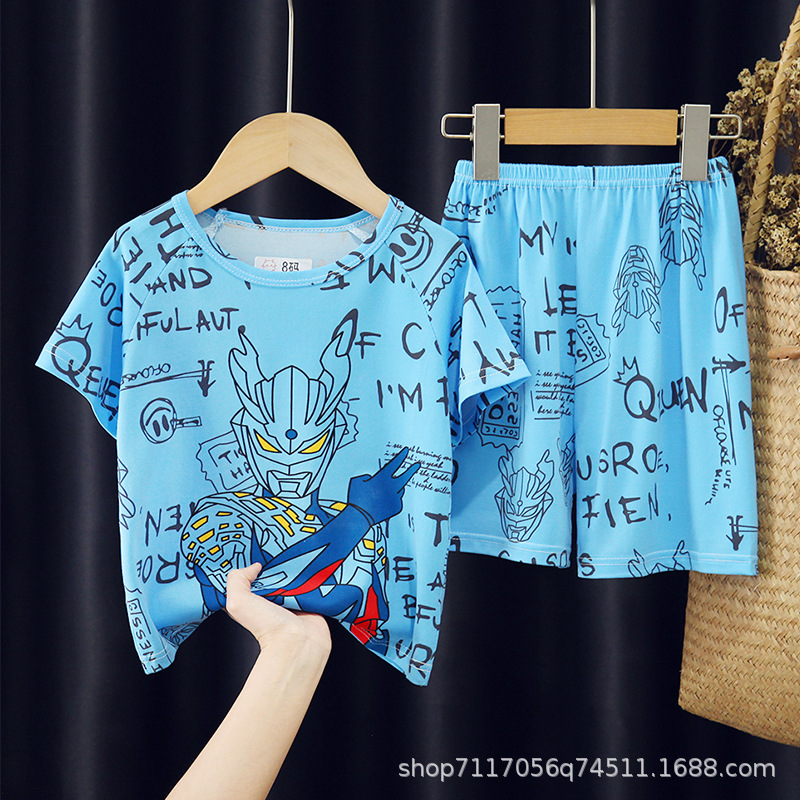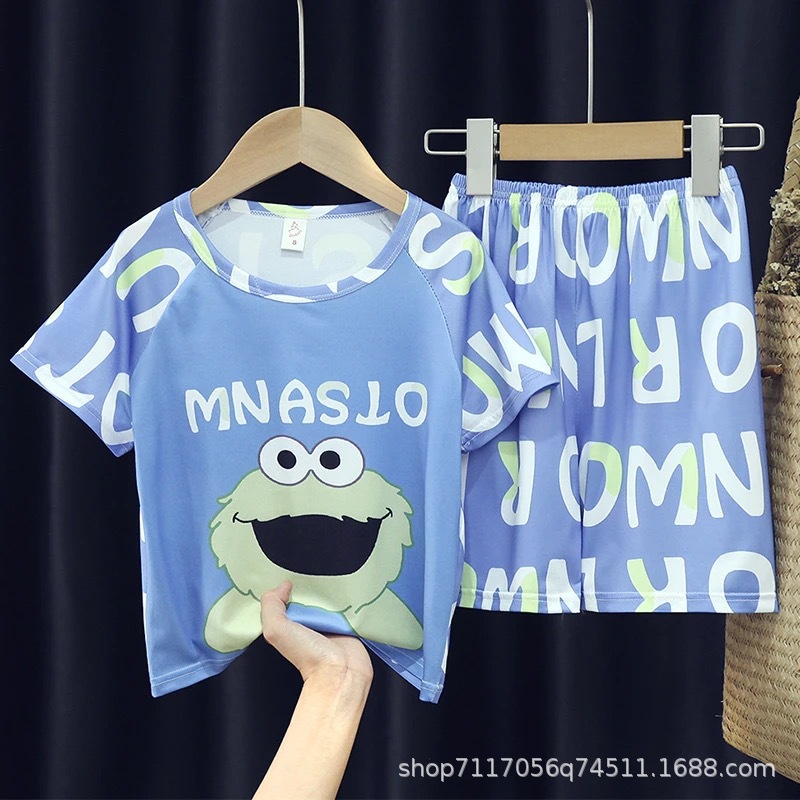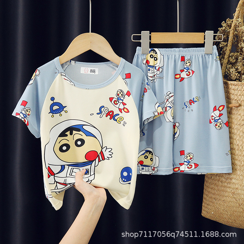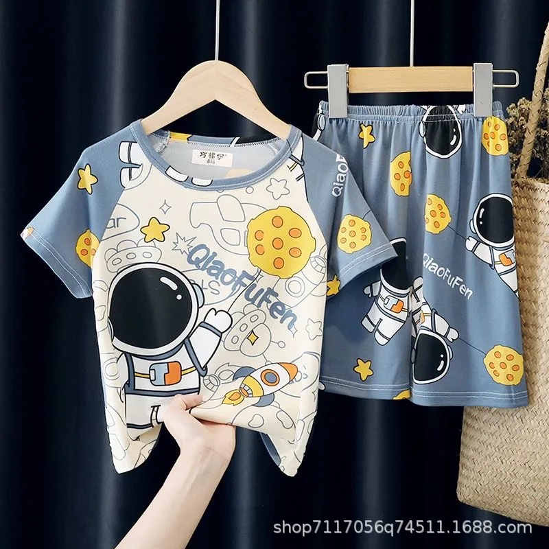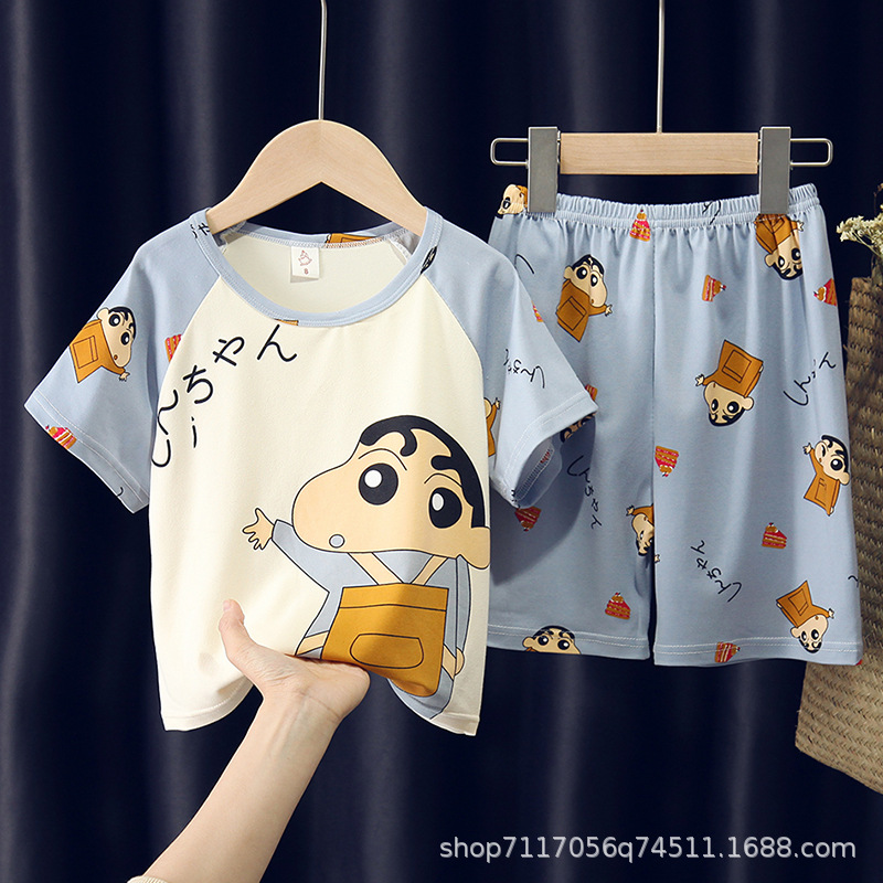 어린이 반팔 잠옷, 여름 남아용 만화 캐릭터 홈웨어 세트, 초등학생 에어컨 의류, 중소형 아동복스토어 가기