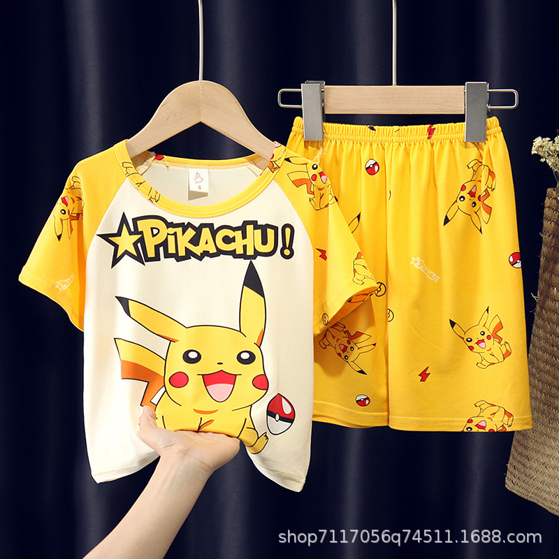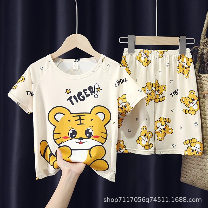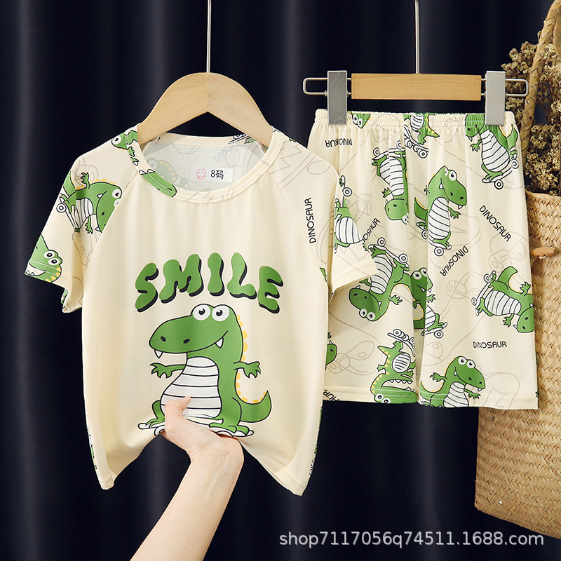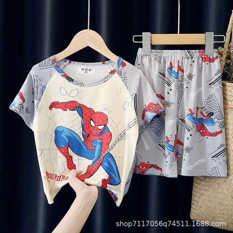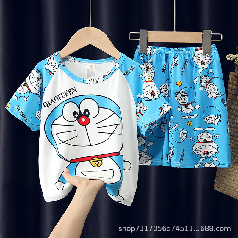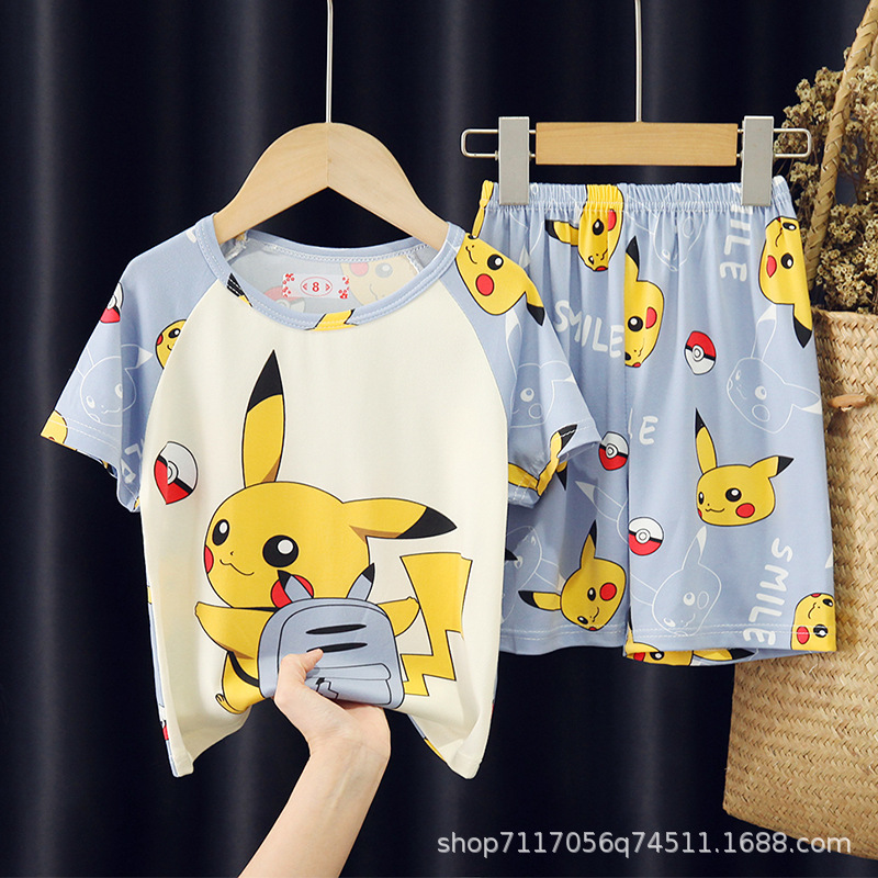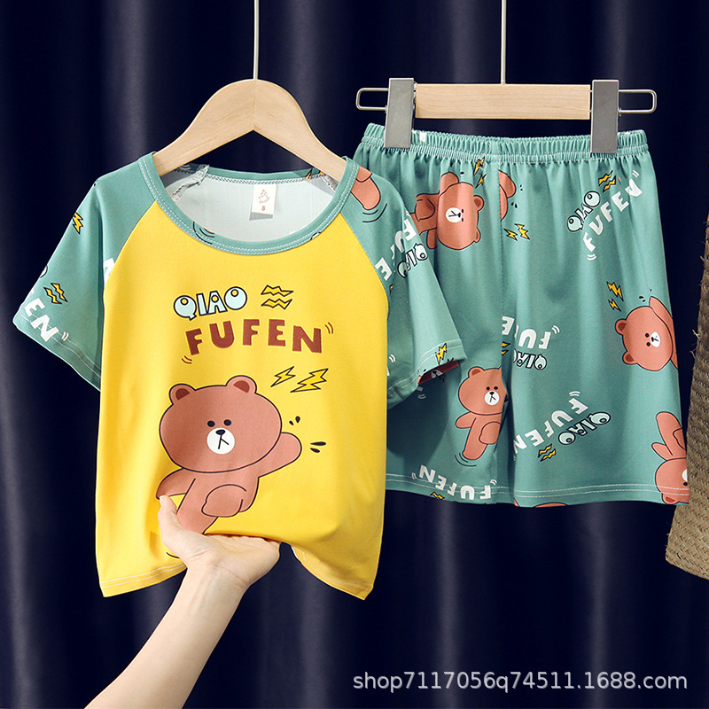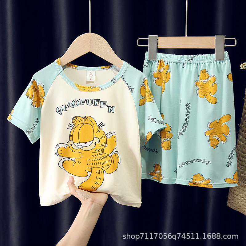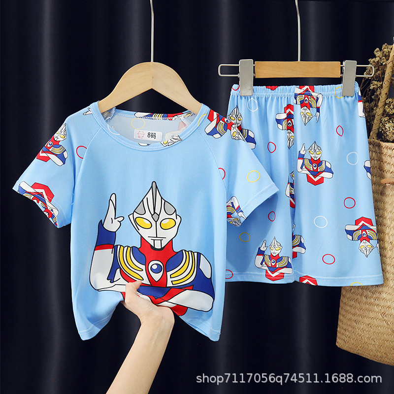 어린이 반팔 잠옷, 여름 남아용 만화 캐릭터 홈웨어 세트, 초등학생 에어컨 의류, 중소형 아동복스토어 가기