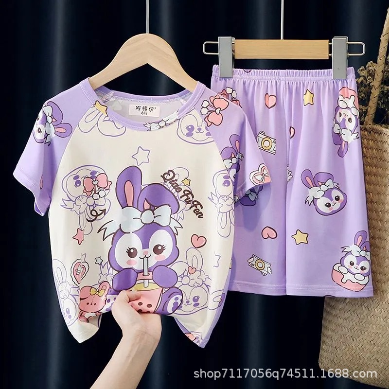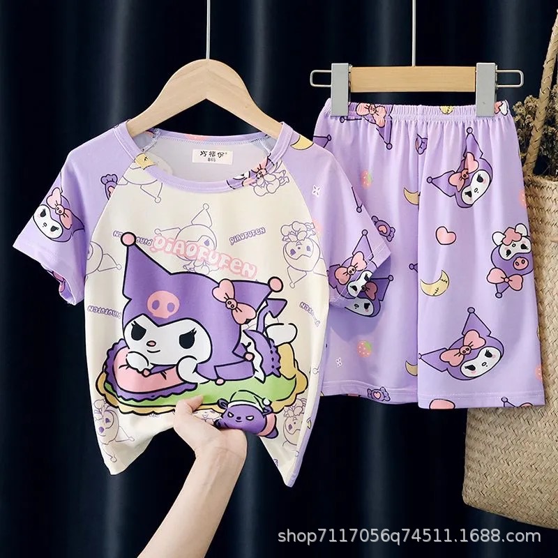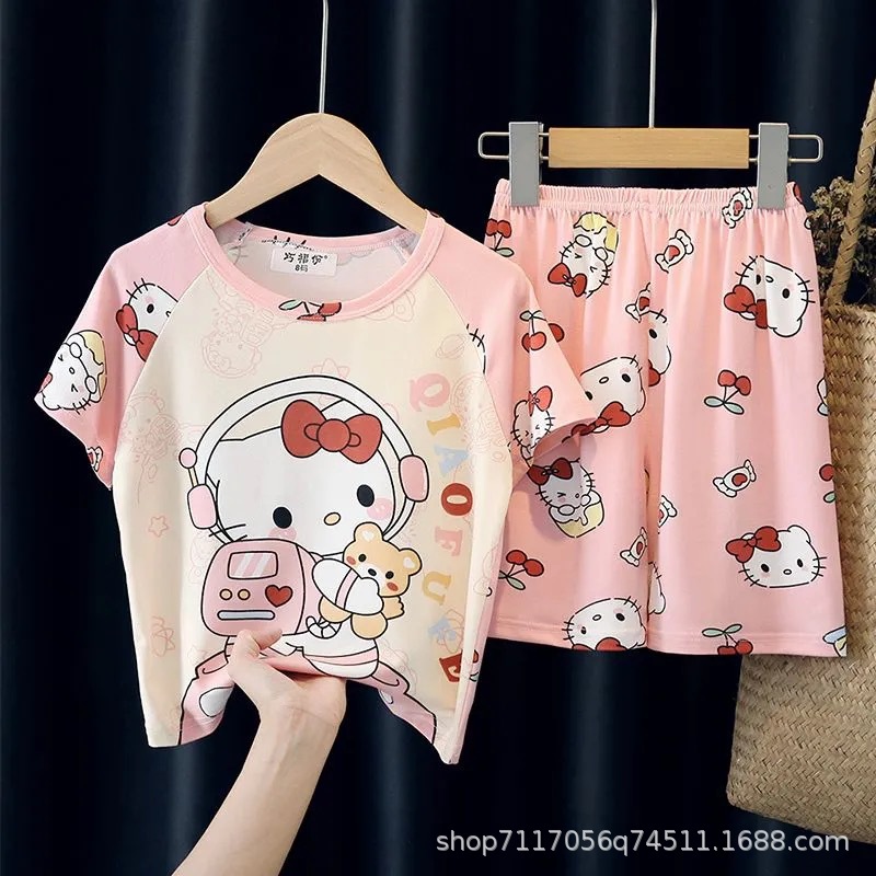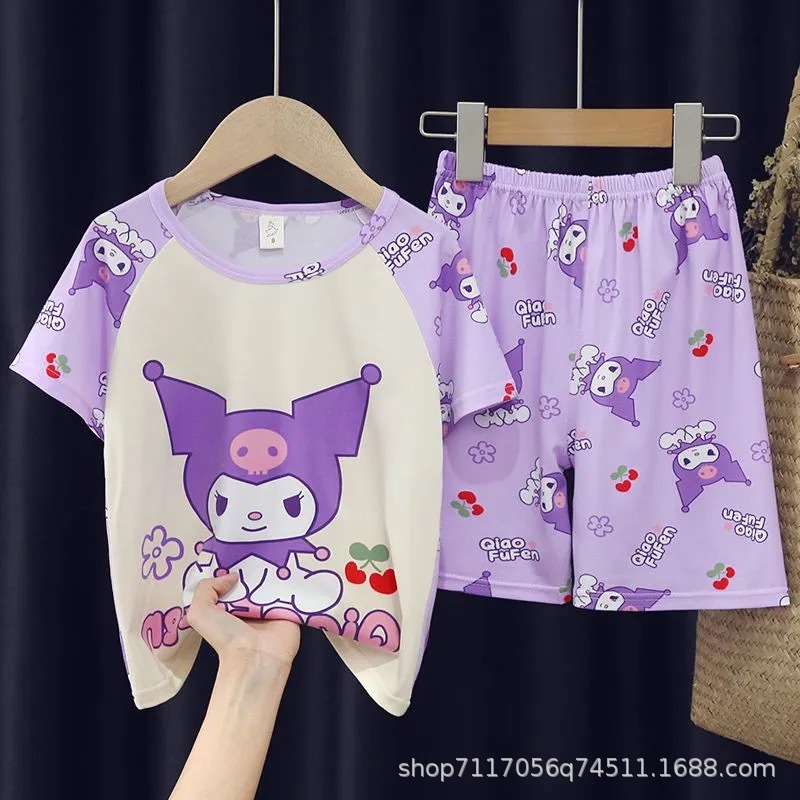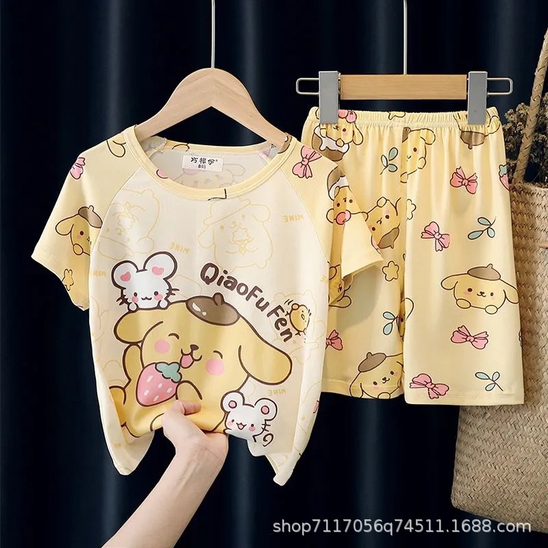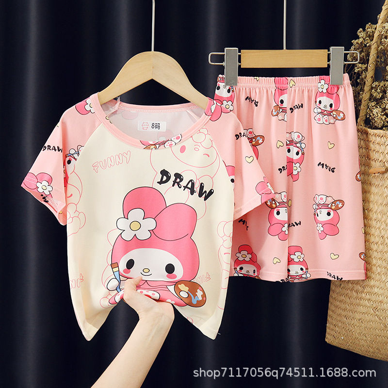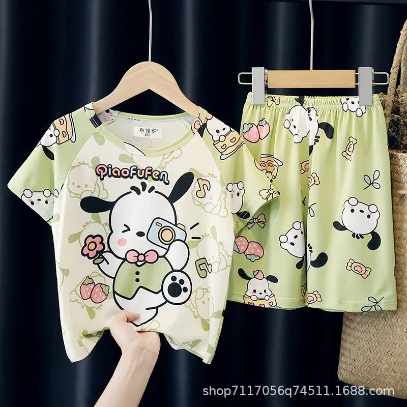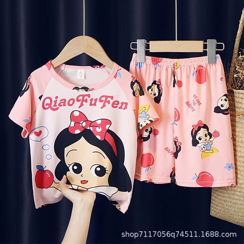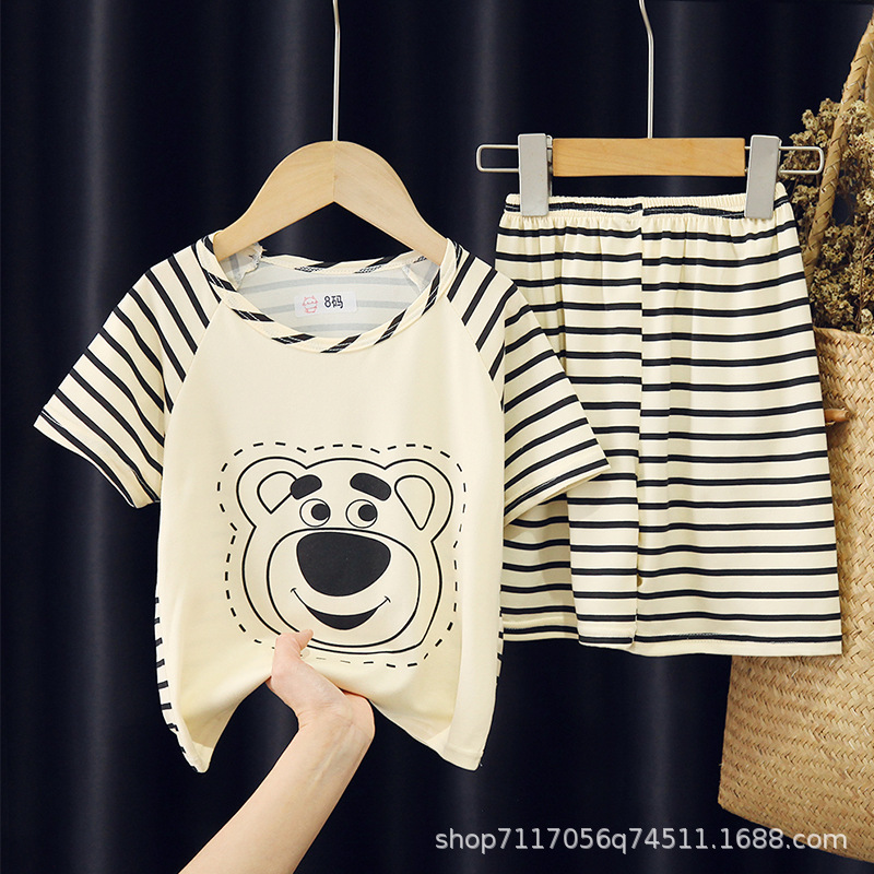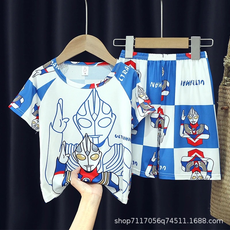 어린이 반팔 잠옷, 여름 남아용 만화 캐릭터 홈웨어 세트, 초등학생 에어컨 의류, 중소형 아동복스토어 가기