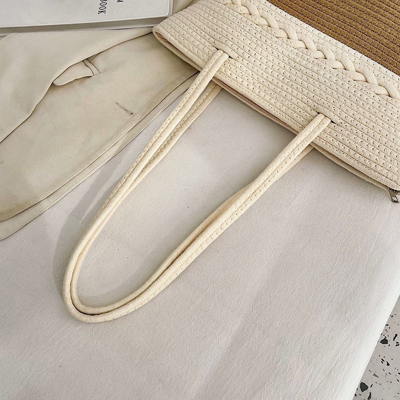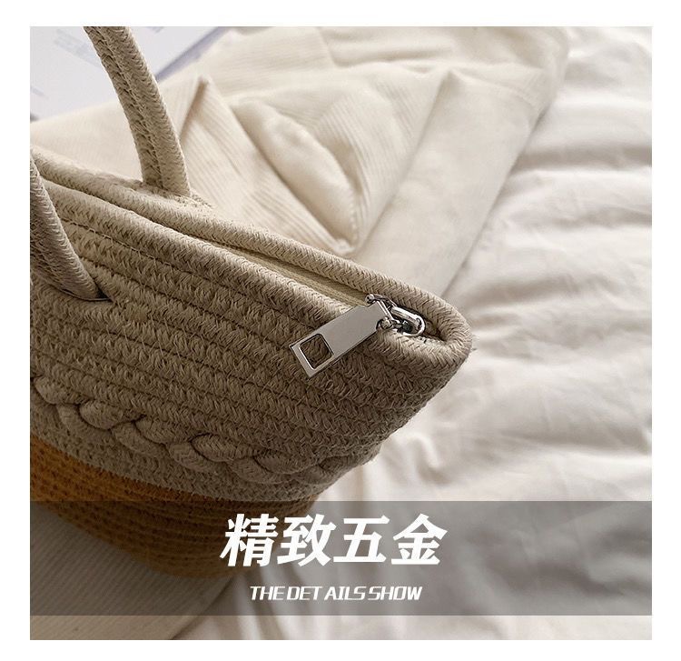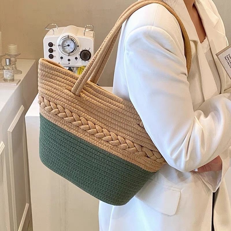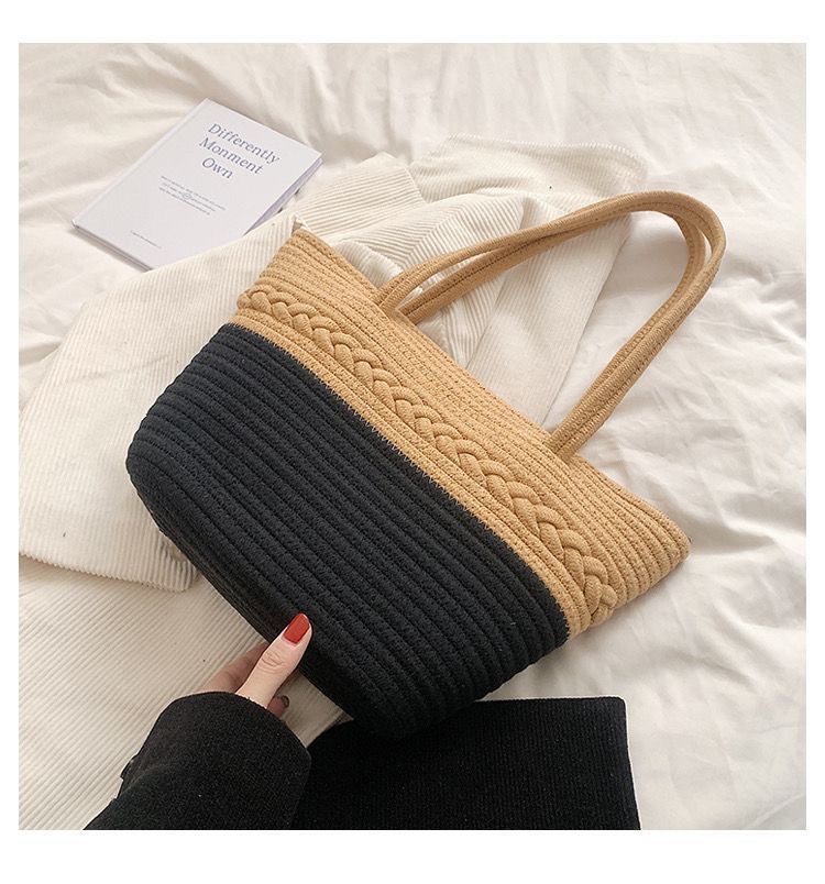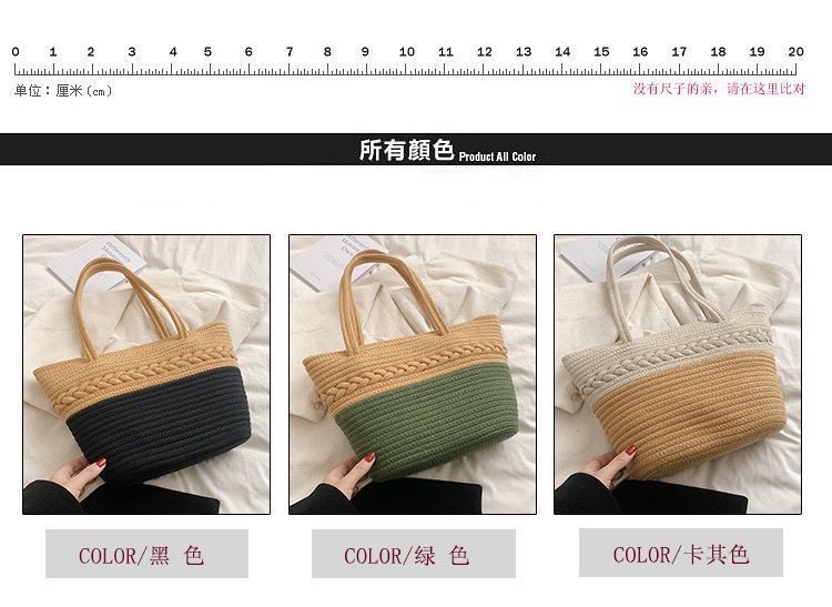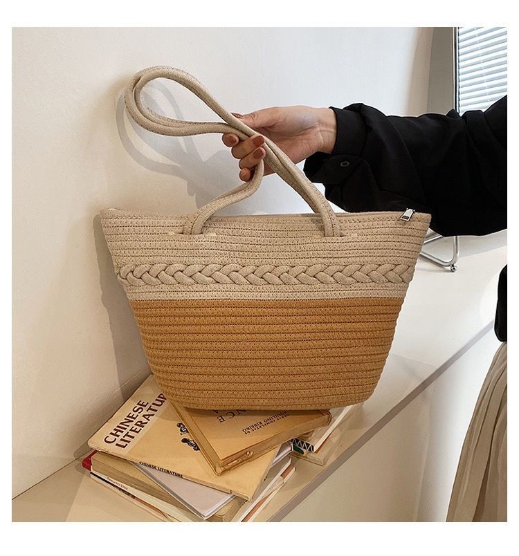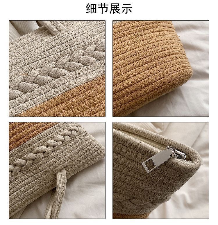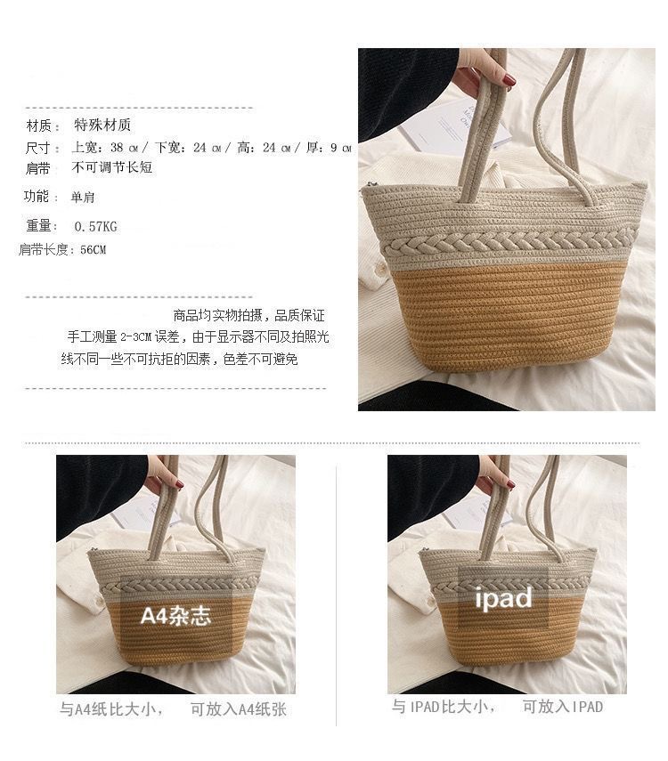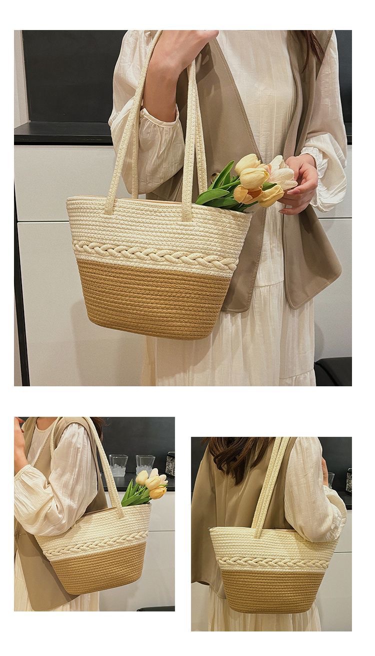 면사로 짠 가방, 새로운 대비색 숄더백, 대용량 밀짚 가방, 휴가용 비치백, 다용도 여성용 토트백스토어 가기