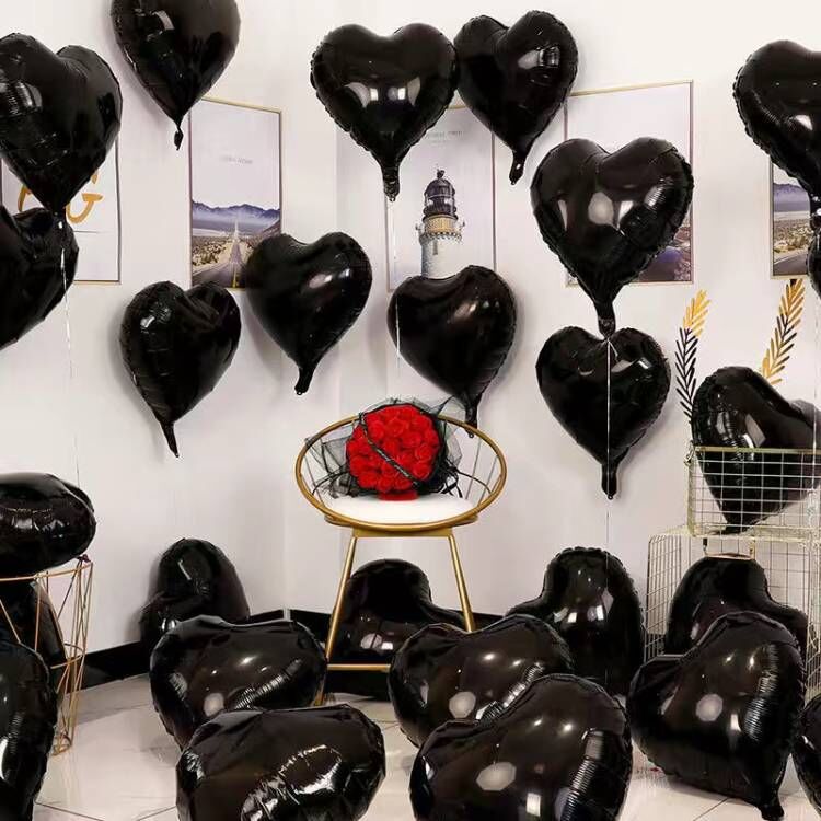 • 18inch 블랙 하트 - 리본이 없는 10개, 약 10m