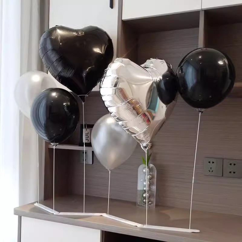• 새로운 스탠드 + 은색 및 검정색 풍선 6개, 약 54cm