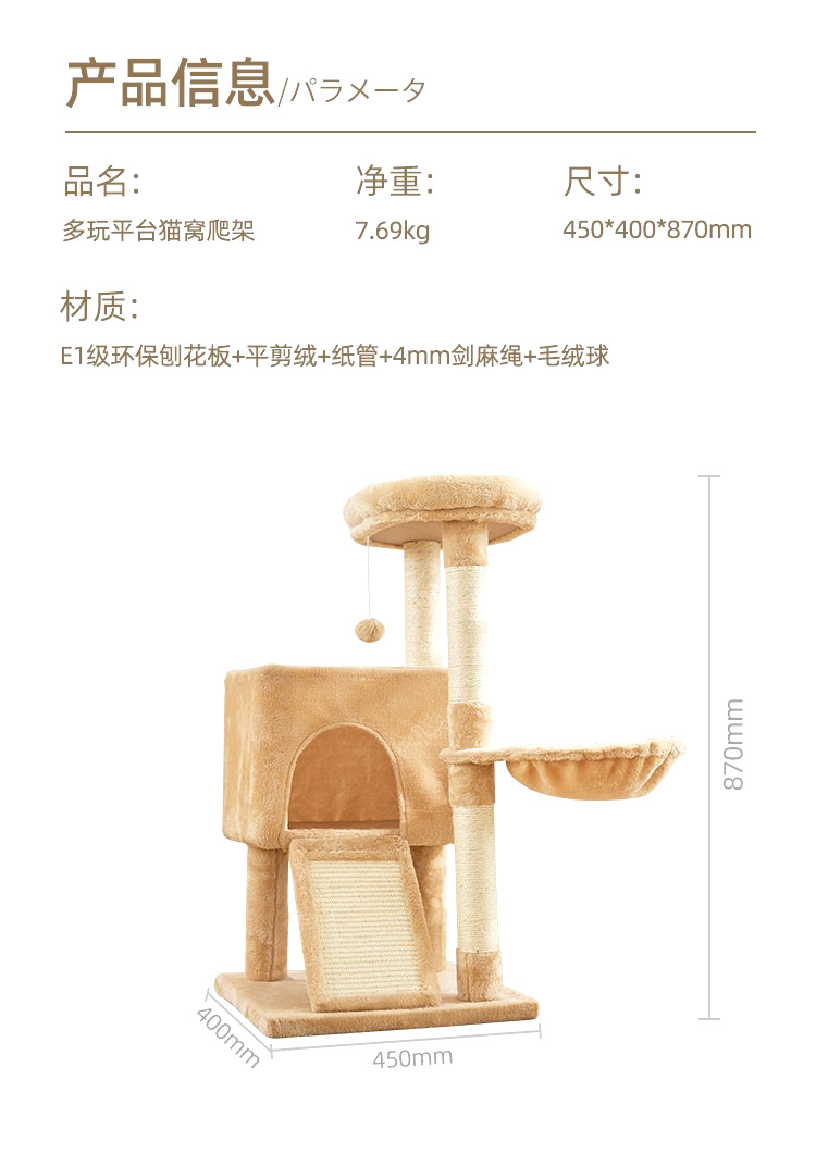 猫窝猫爬架环保材料宠物玩具猫塔猫窝猫树一体占地小猫爬架