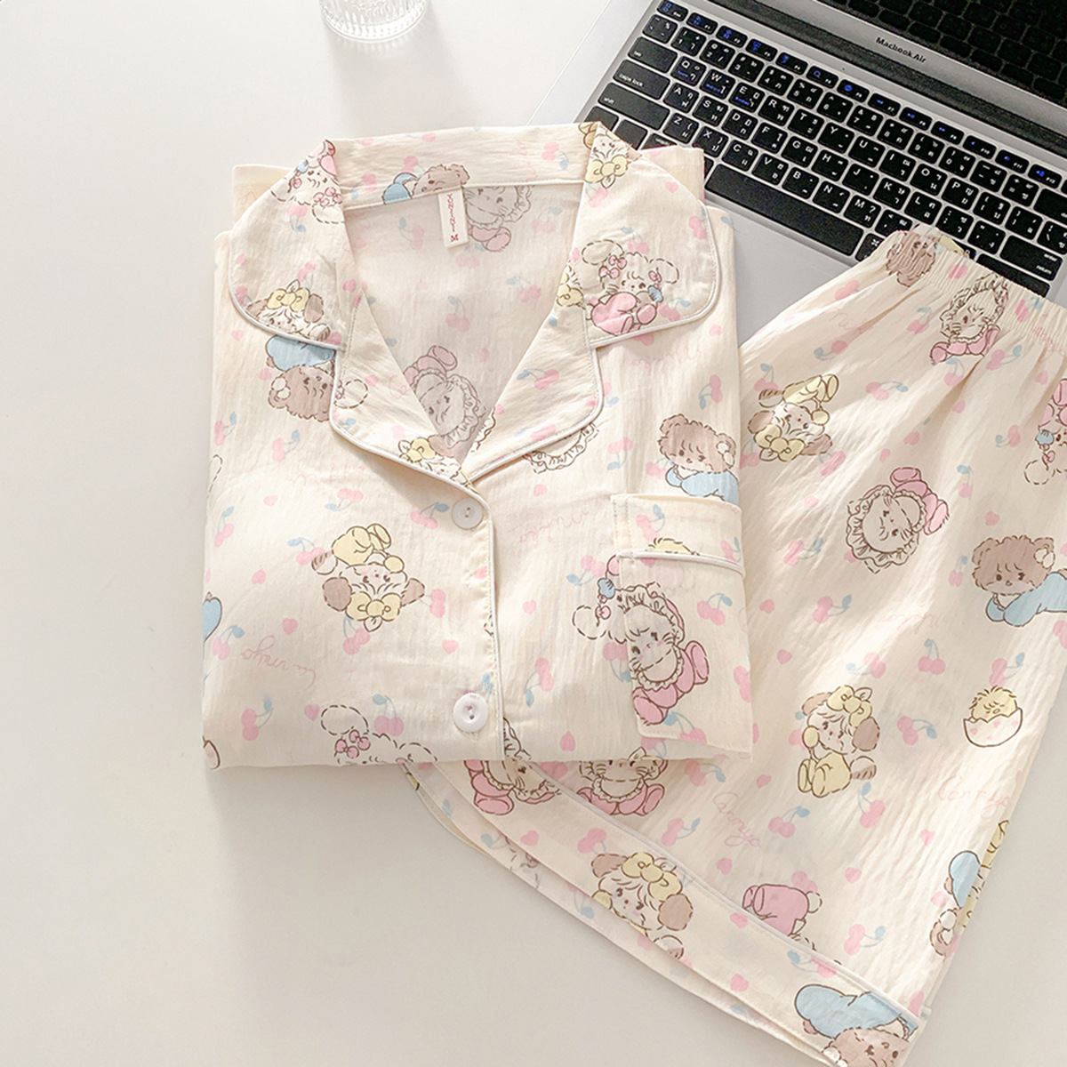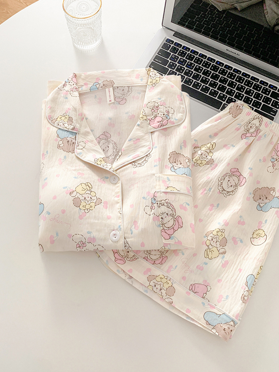 만화 미코 여름 구름 면 반팔 반바지 여성 귀여운 학생 달콤한 소녀 홈 의류 세트스토어 가기