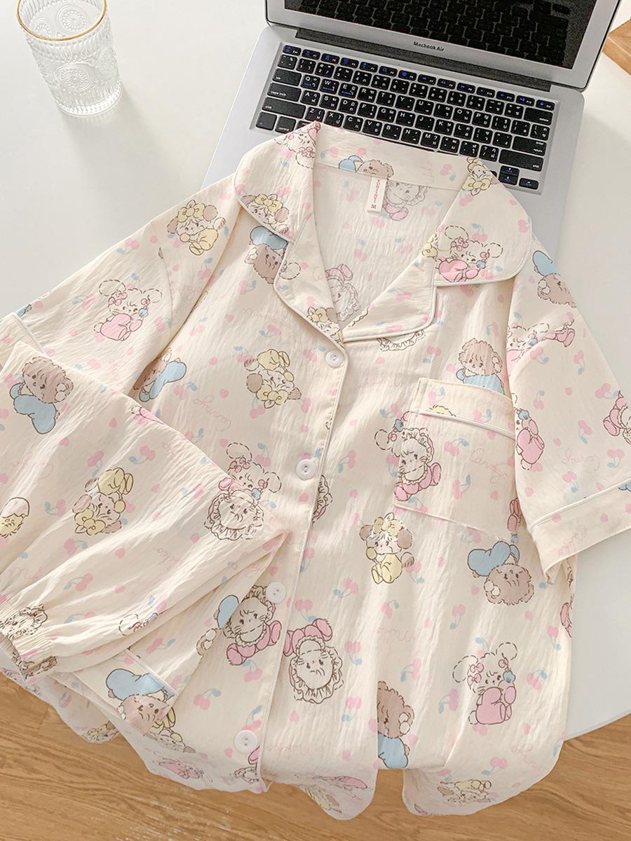 만화 미코 여름 구름 면 반팔 반바지 여성 귀여운 학생 달콤한 소녀 홈 의류 세트